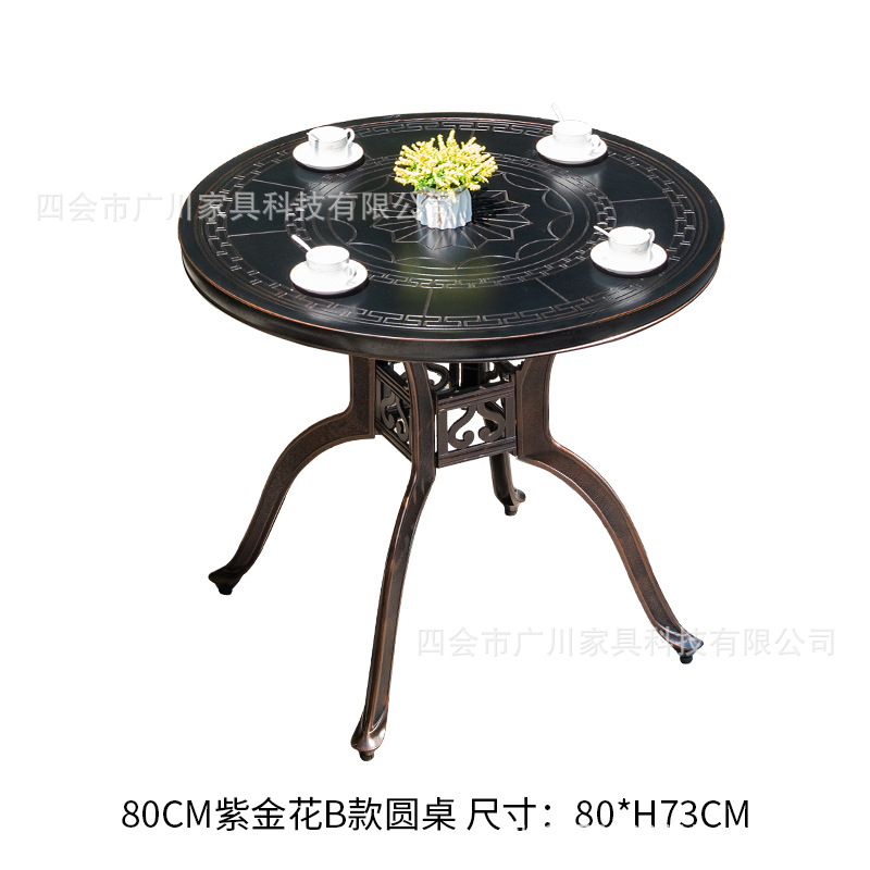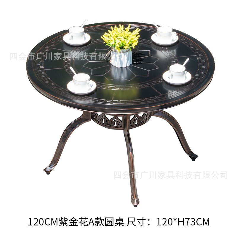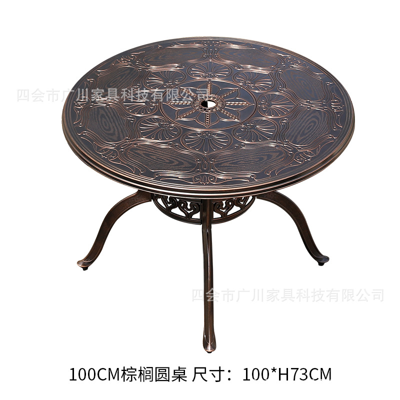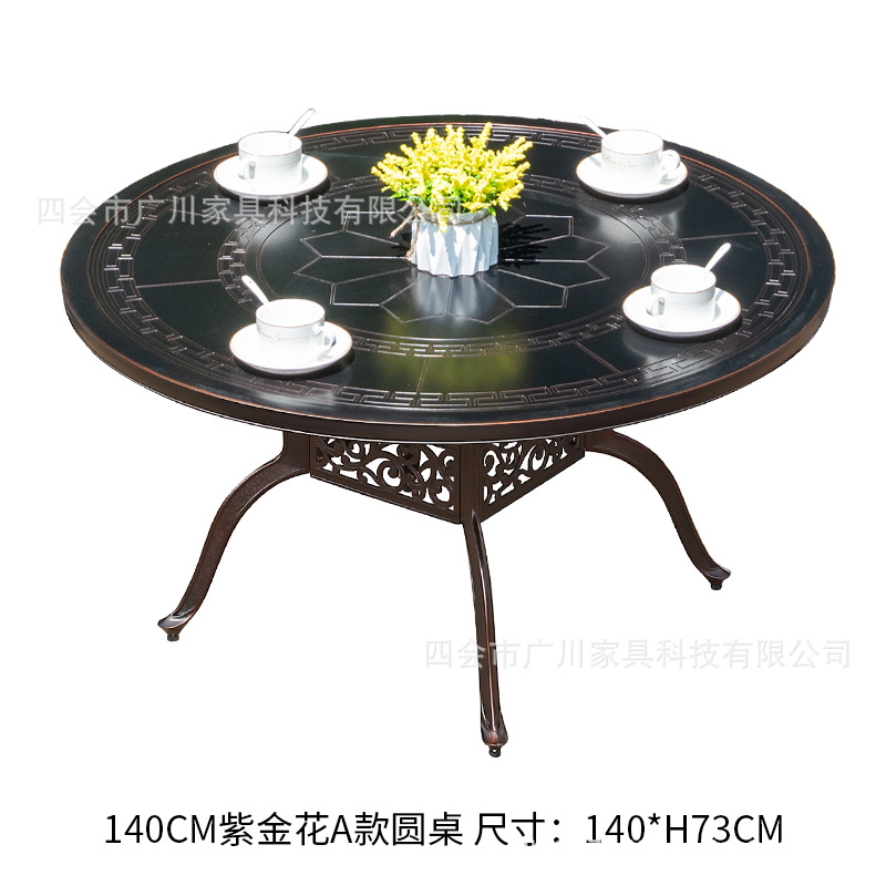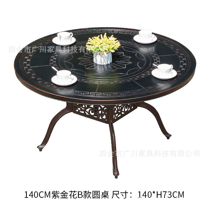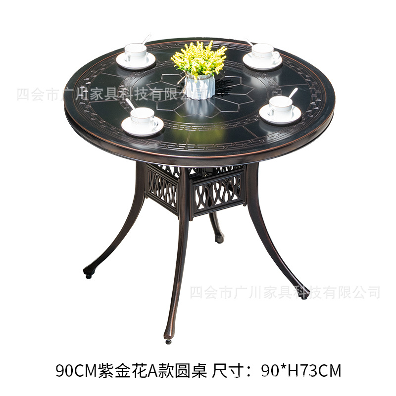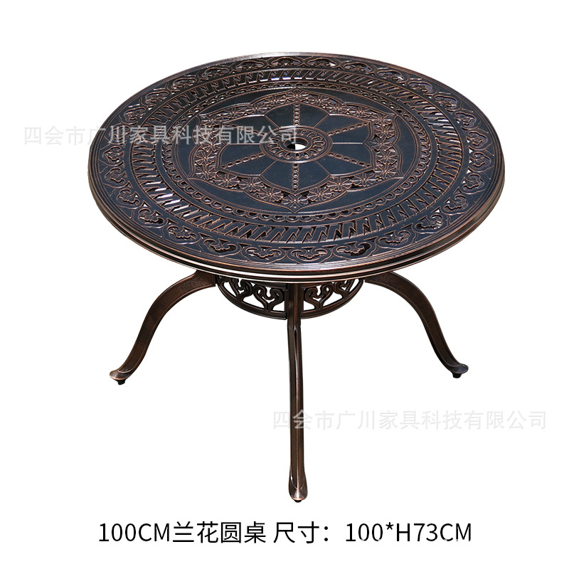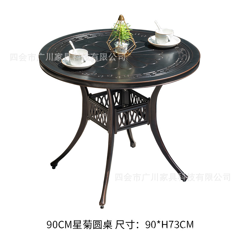 야외 단일 식탁 주조 알루미늄 방수 및 태양방지 금속 테이블 조각 주조 알루미늄 발코니 안뜰 정원 광장 원탁