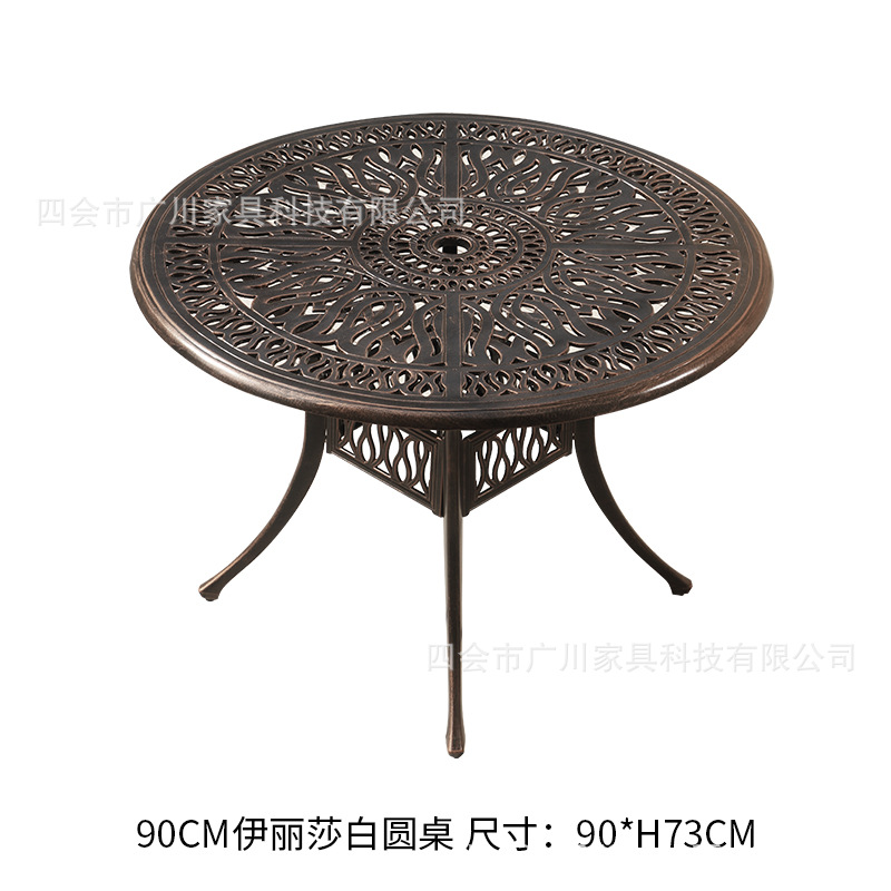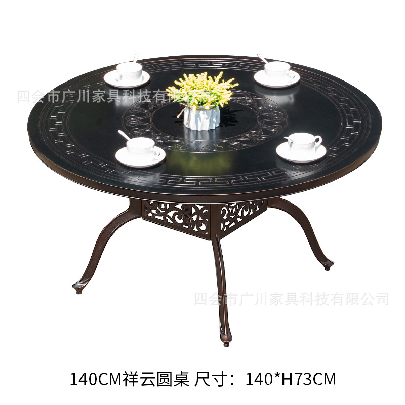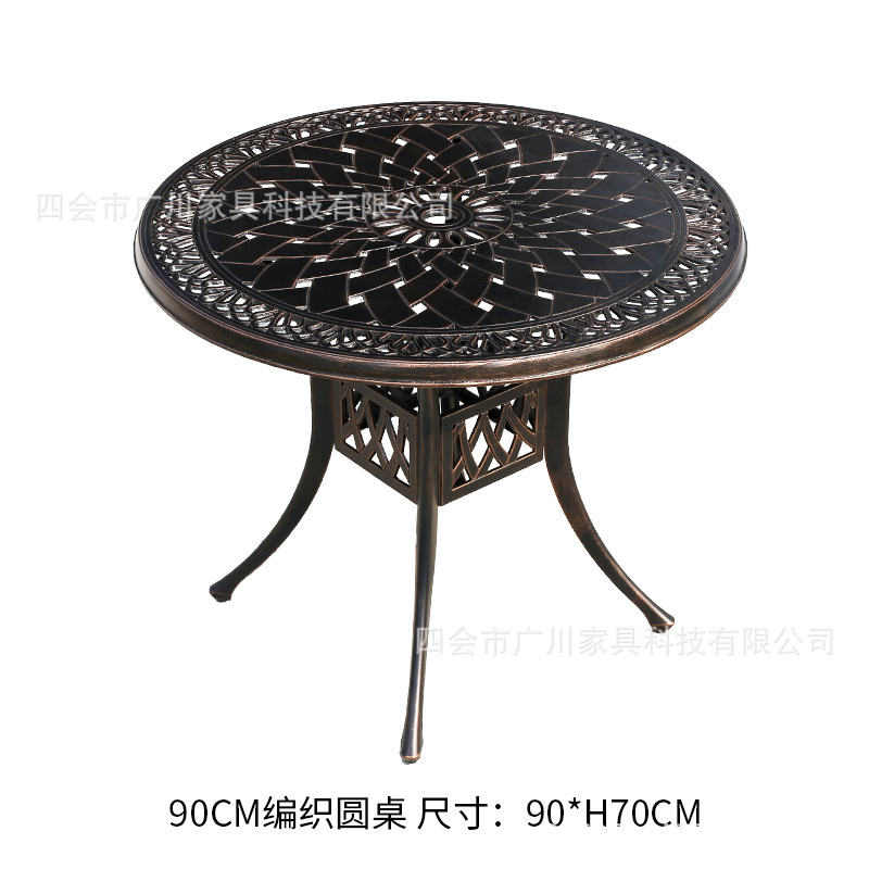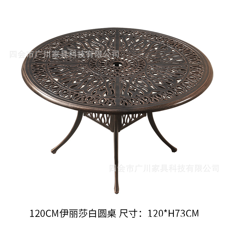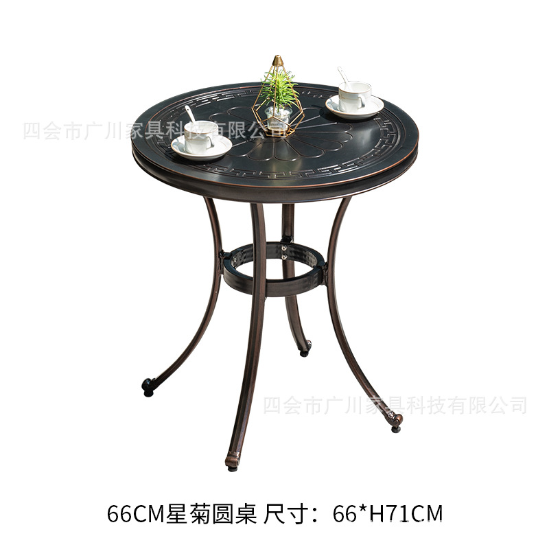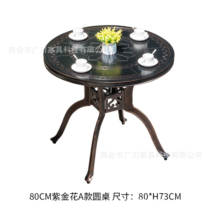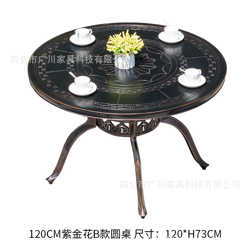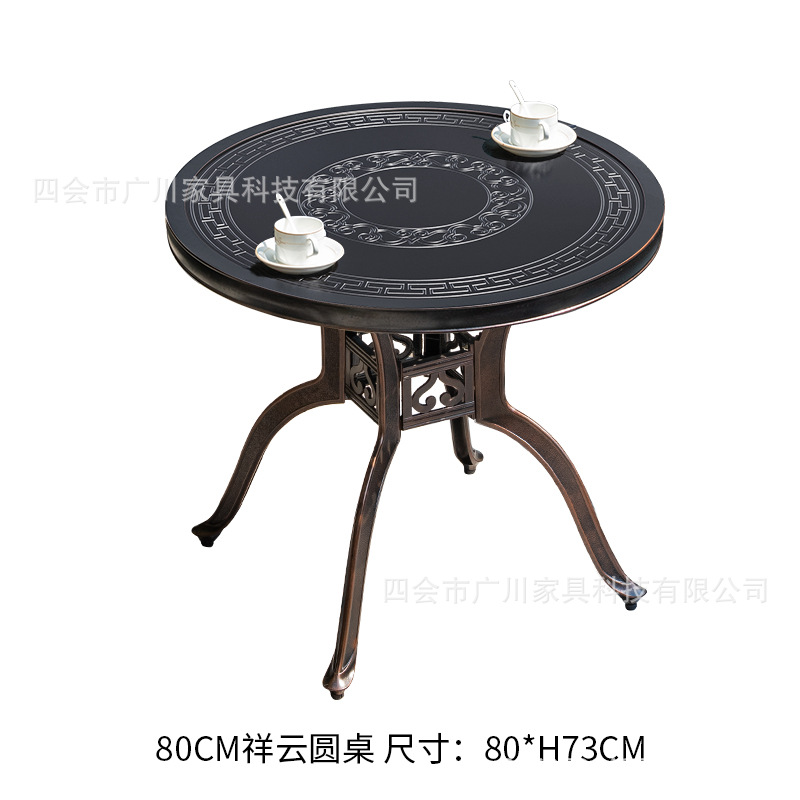 야외 단일 식탁 주조 알루미늄 방수 및 태양방지 금속 테이블 조각 주조 알루미늄 발코니 안뜰 정원 광장 원탁