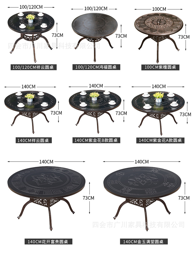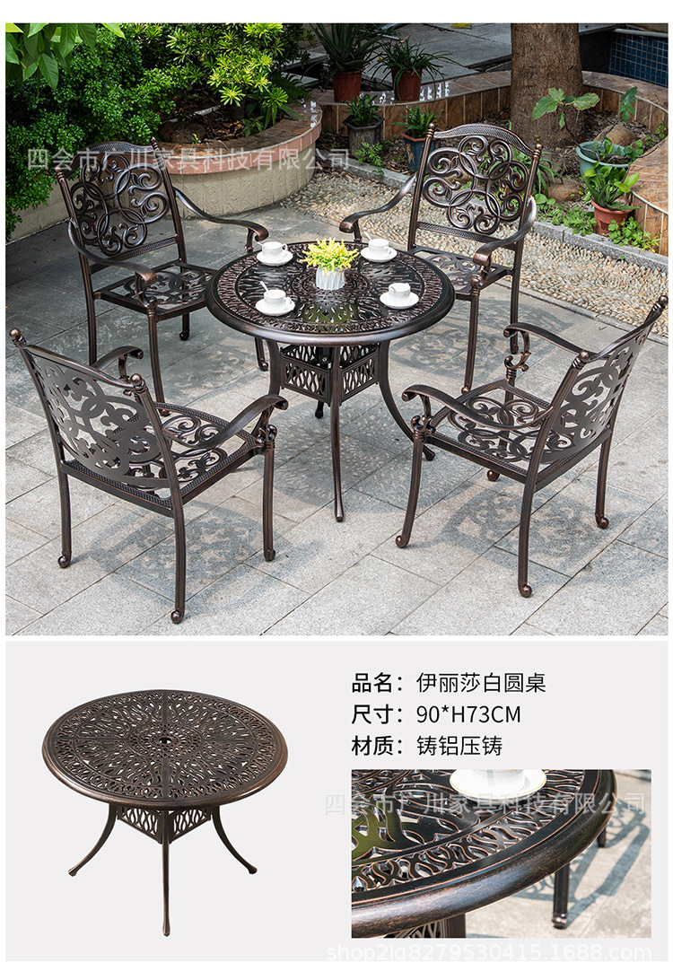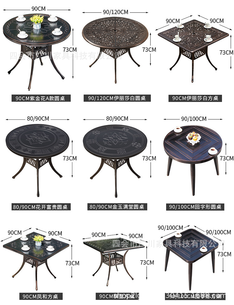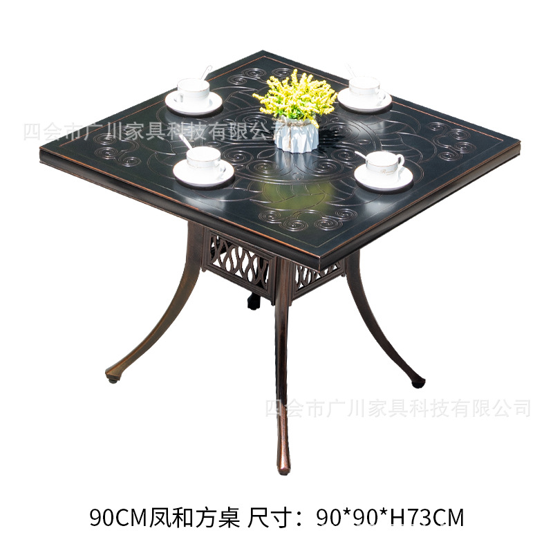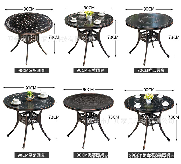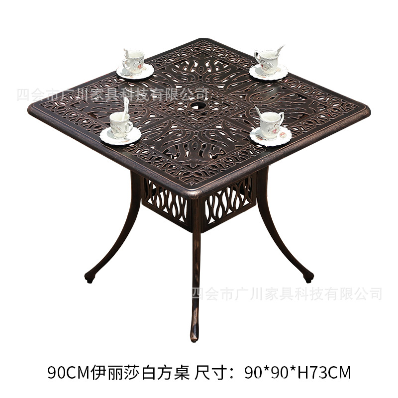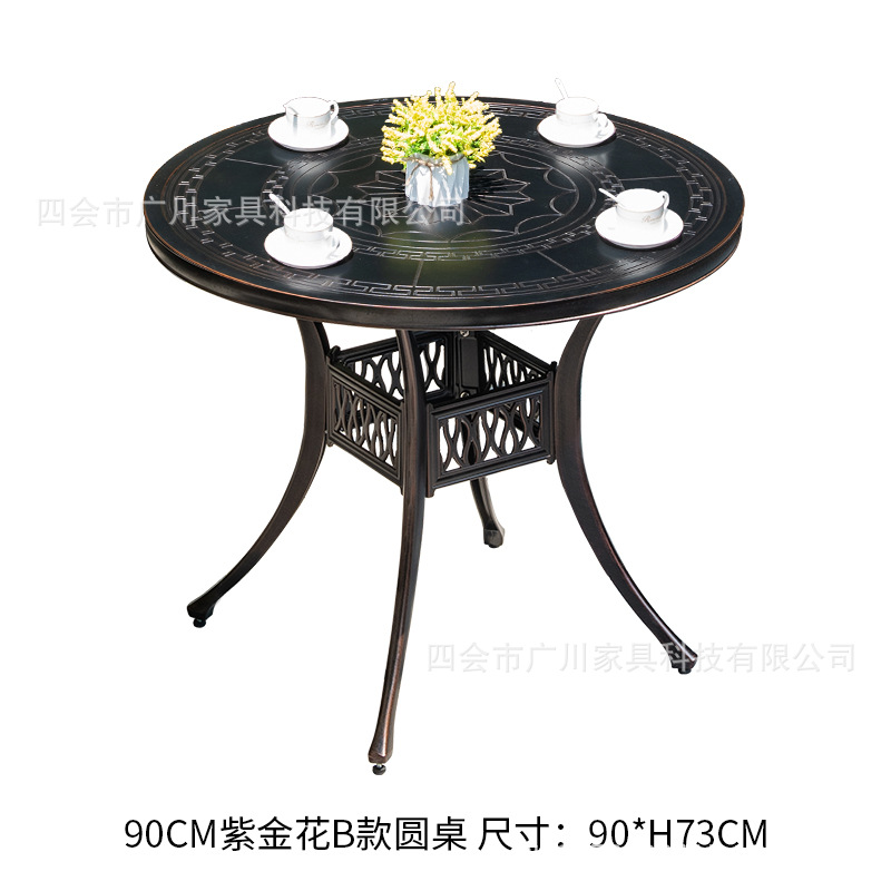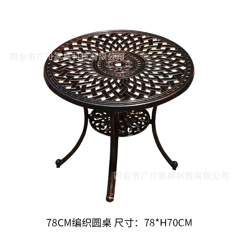 야외 단일 식탁 주조 알루미늄 방수 및 태양방지 금속 테이블 조각 주조 알루미늄 발코니 안뜰 정원 광장 원탁