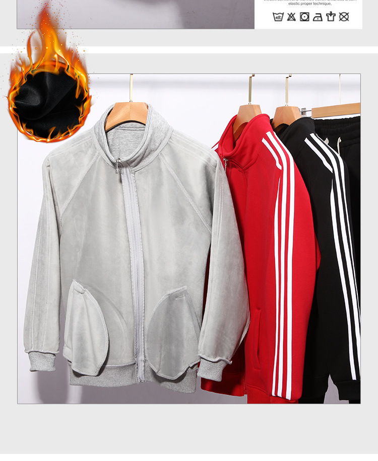 화면에 보이는 벨벳 소재의 반지퍼 스탠드 칼라 스웨트셔츠, 남녀공용 커스텀 삼선 스트라이프 라글란 라운드넥 캐주얼 가디건스토어 가기