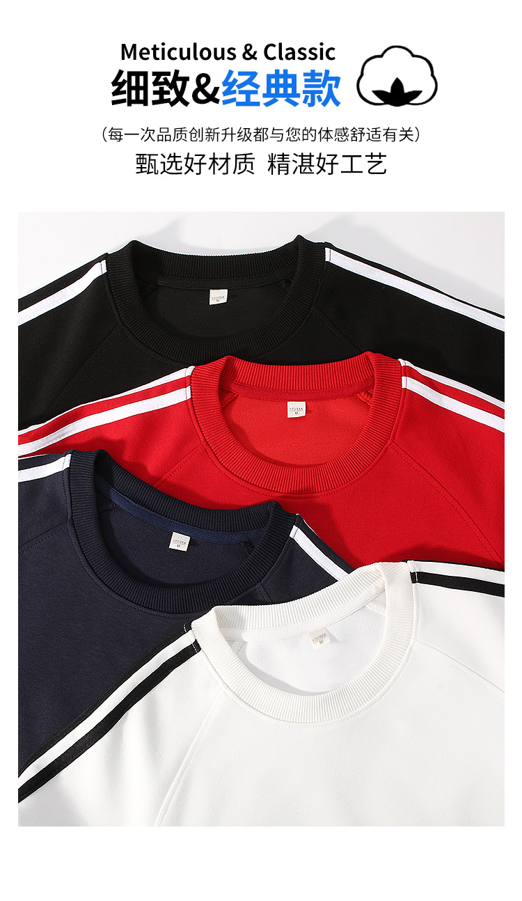 • 세 줄 스트라이프 기모 라운드넥 맨투맨 티셔츠 블랙