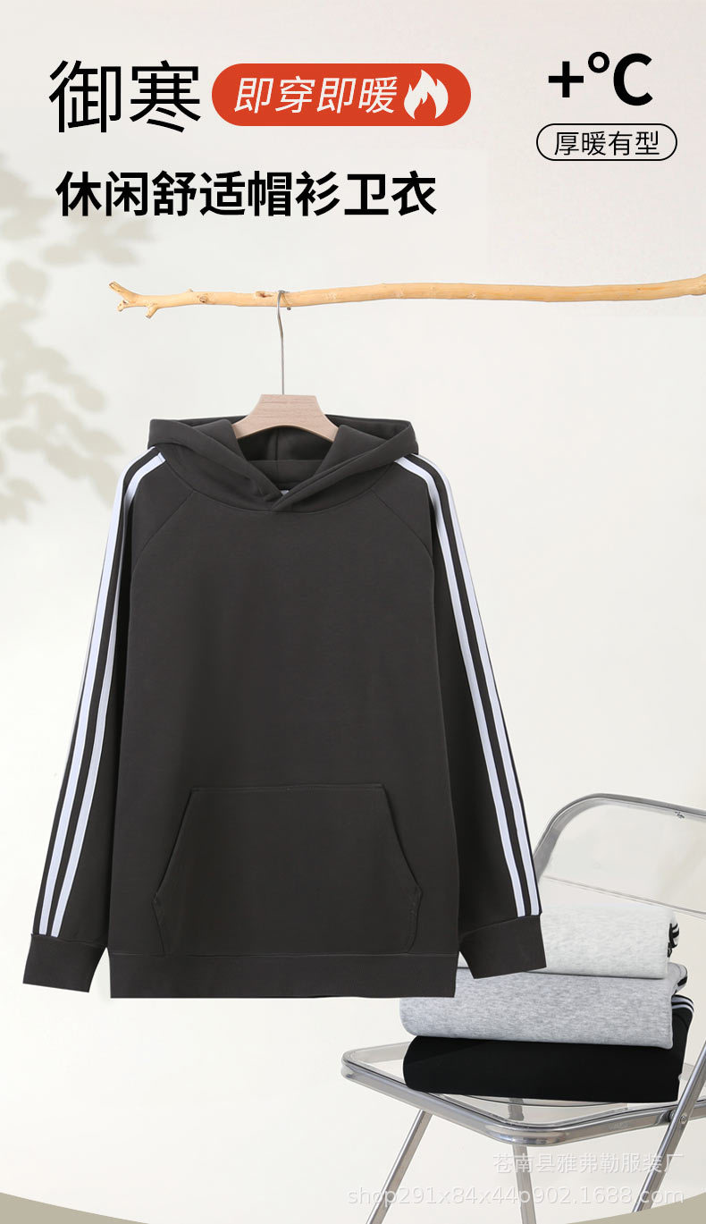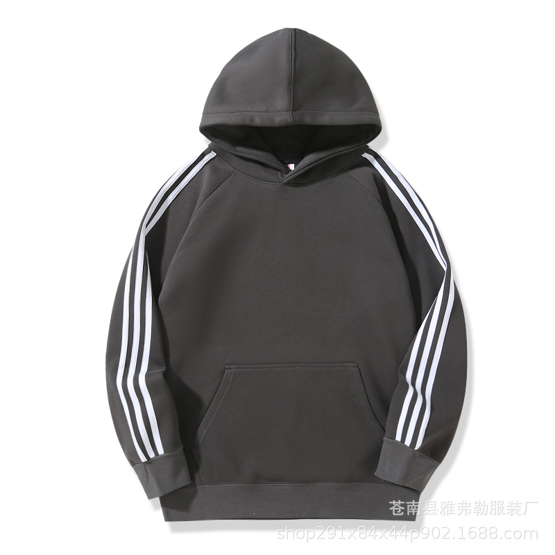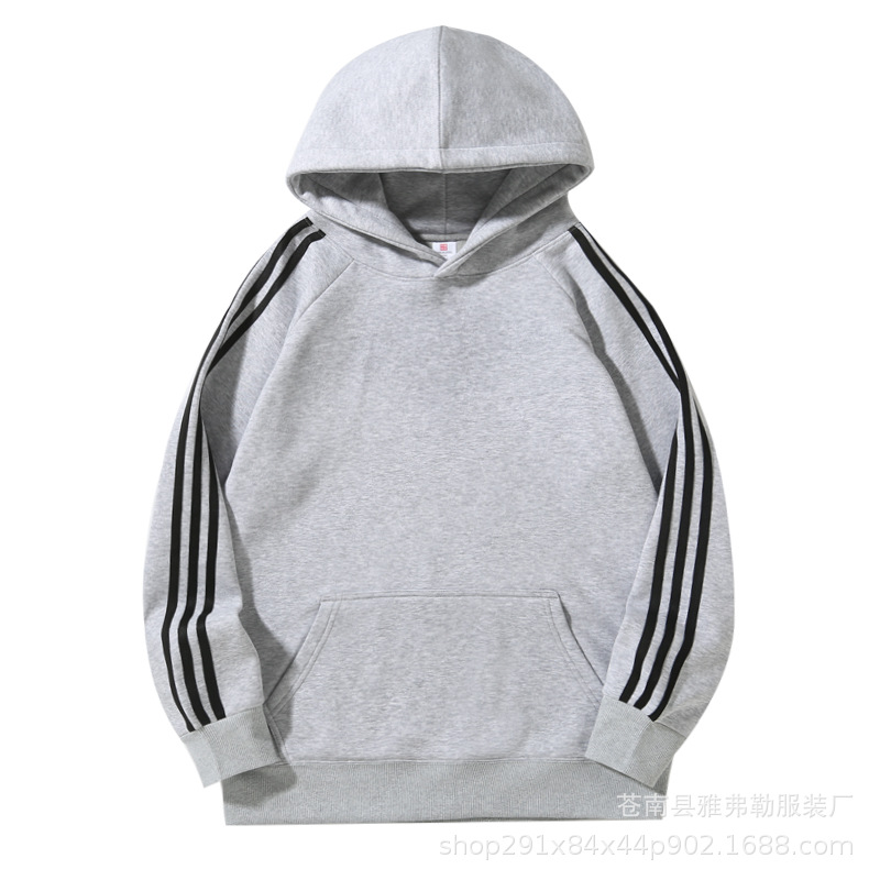 • 세 줄 중국산 면 올리 벨벳 후드 스웨트셔츠 아이언 그레이