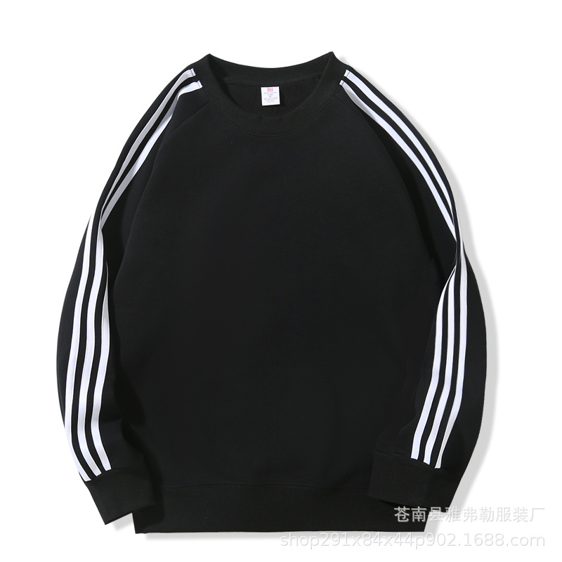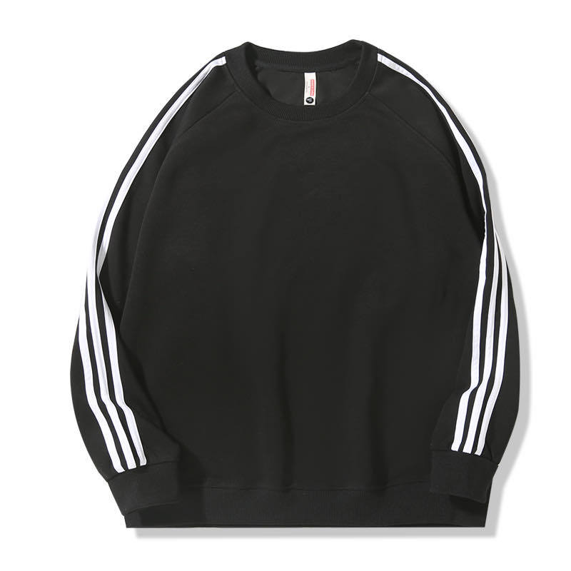 • 세 줄 중국산 면 올리 벨벳 라운드 넥 스웨트셔츠 블랙