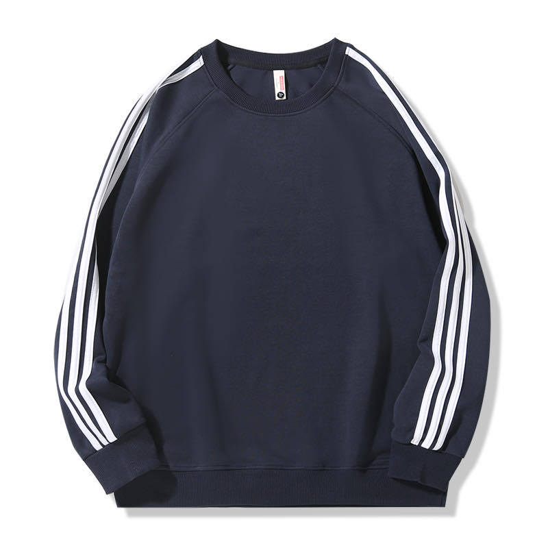 • 세 줄 스트라이프 기모 라운드넥 맨투맨 티셔츠 (네이비)