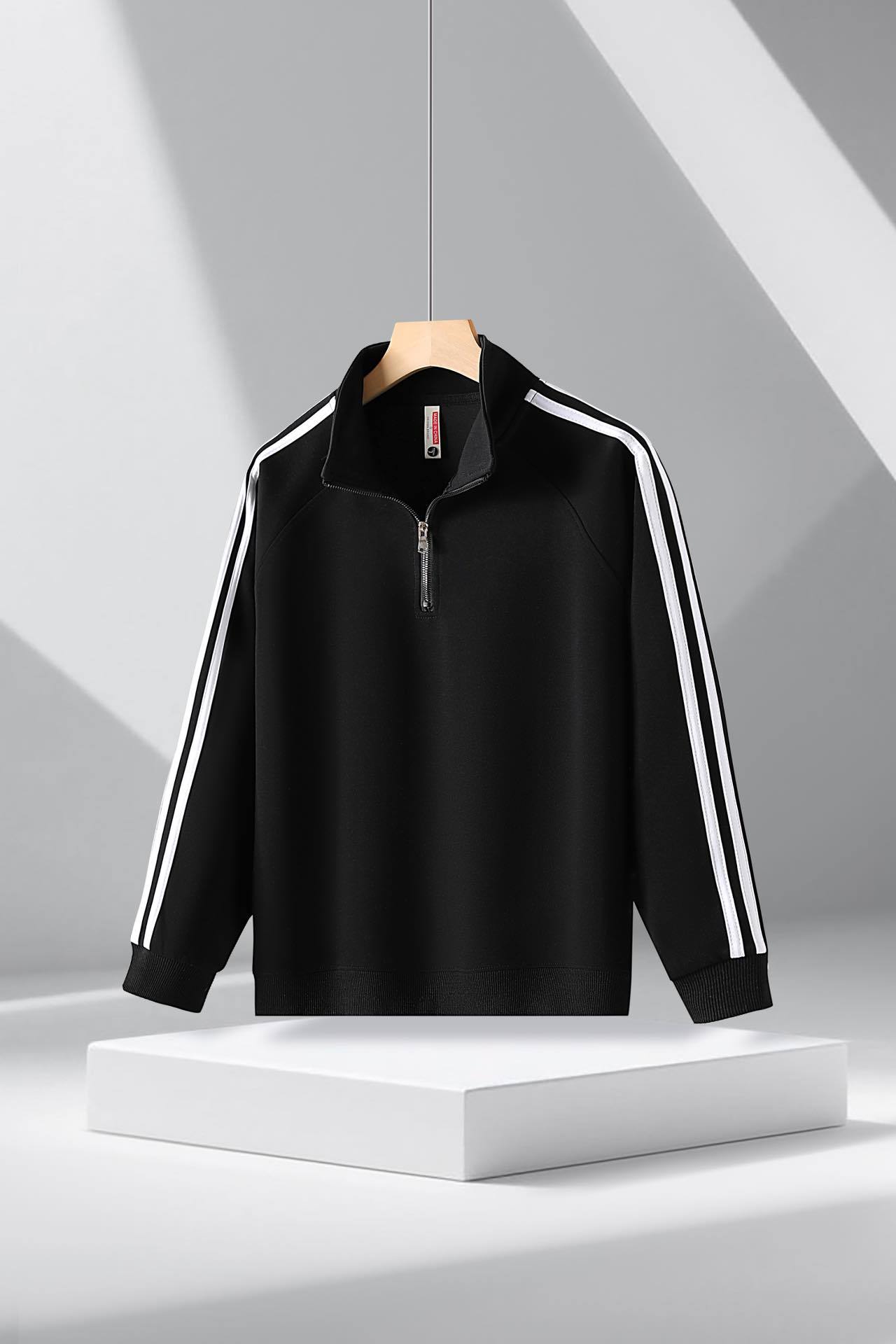 • 삼선 반지퍼 스탠드 칼라 스웨트셔츠 블랙