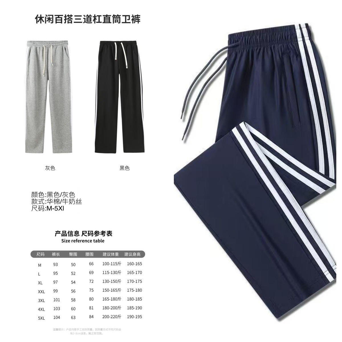 • 세 줄 스트라이프 조끼 세트용 나사형 트레이닝 팬츠 (색상 별도 기재)