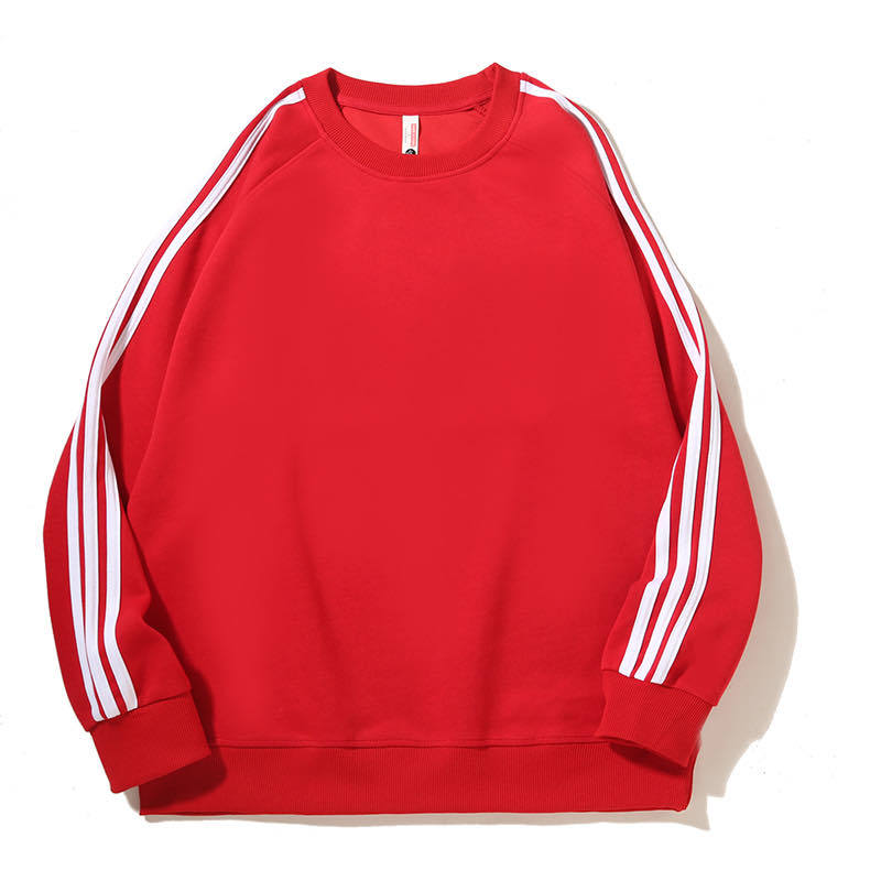 • 세 줄 스트라이프 기모 라운드넥 맨투맨 티셔츠 (레드)