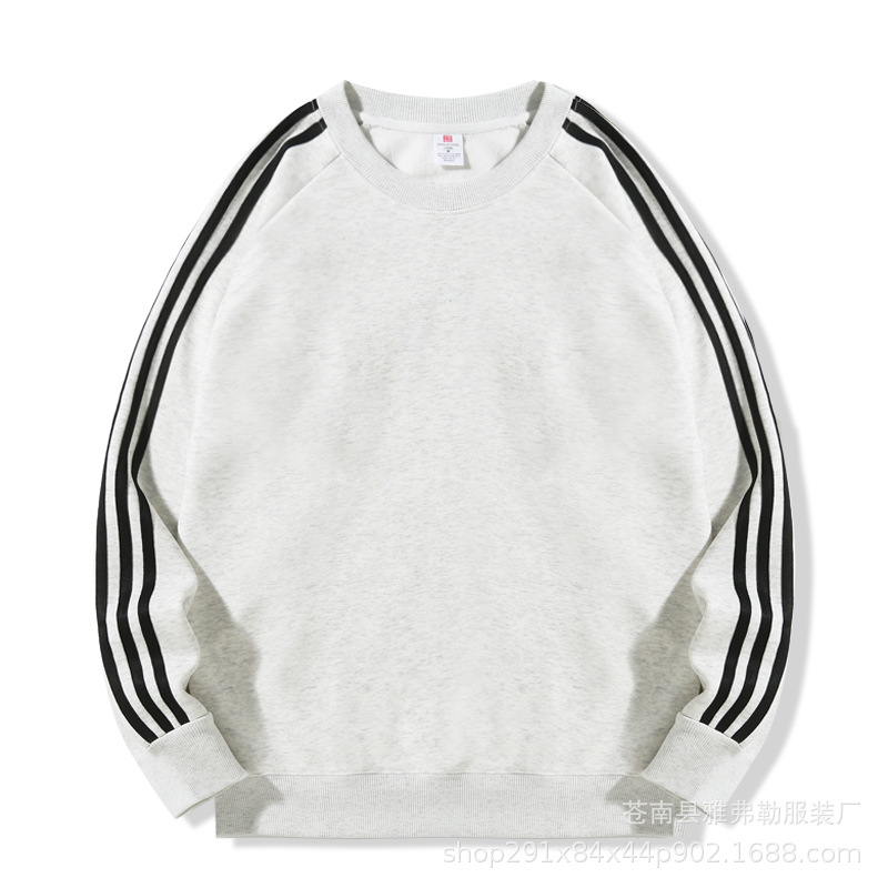 • 세 줄 스트라이프 기모 라운드넥 맨투맨 티셔츠 (회색)