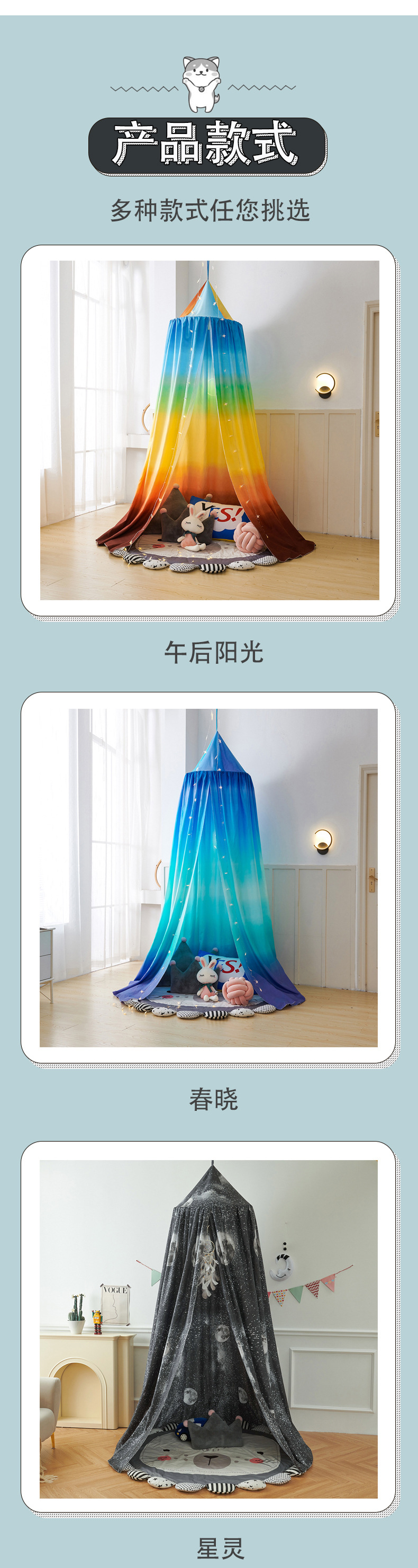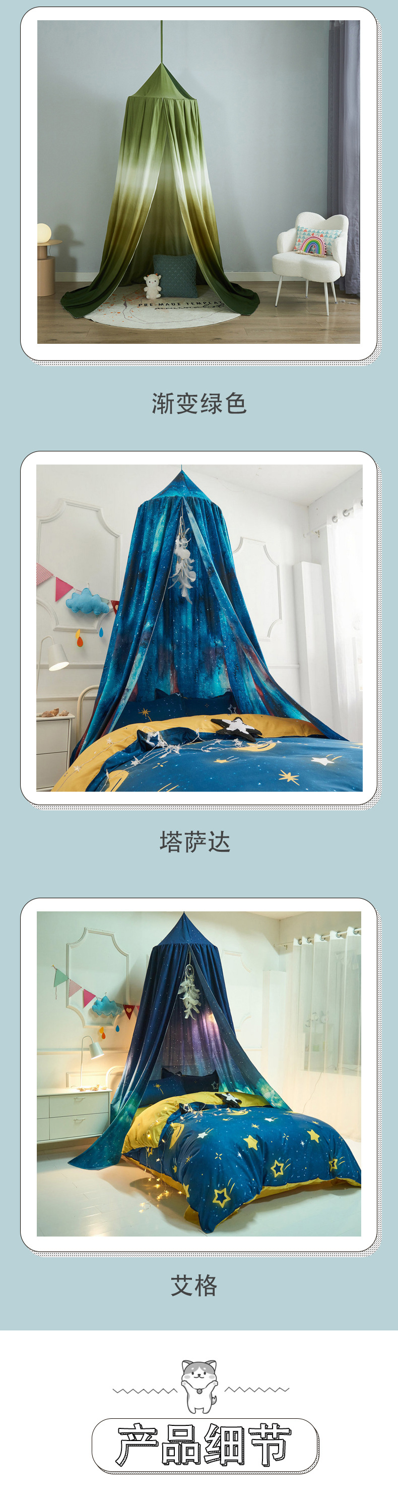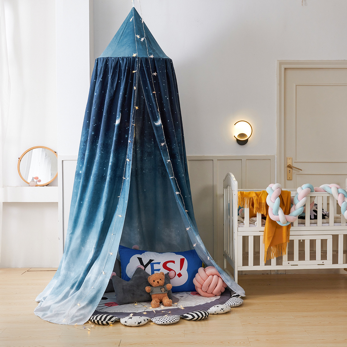 돔 교수형 침대 맨틀 아기 침대 음영 모기장 설치-무료 어린이 실내 인쇄 침대 커튼 침대 장식