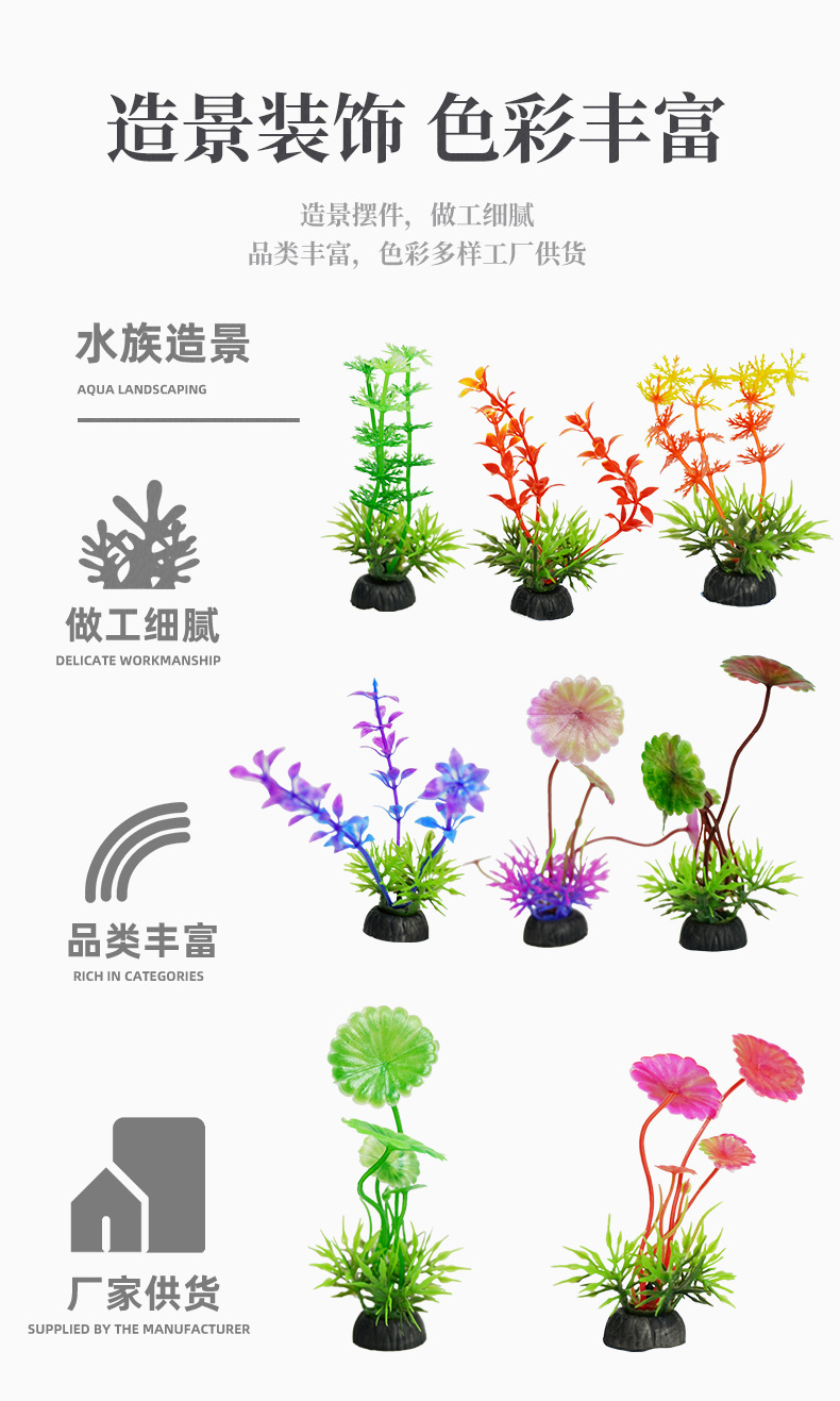 공장 직접 도매 물고기 탱크 모래 테이블 장식 플라스틱 시뮬레이션 수생 식물 인공 꽃 수족관 조경 10-4 시리즈