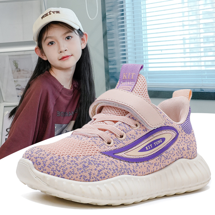 여자 운동화 2024 새로운 유행 경량 어린이 신발 부드러운 밑창 공주 비행 통기성 봄과 가을 달리기 메쉬 신발스토어 가기