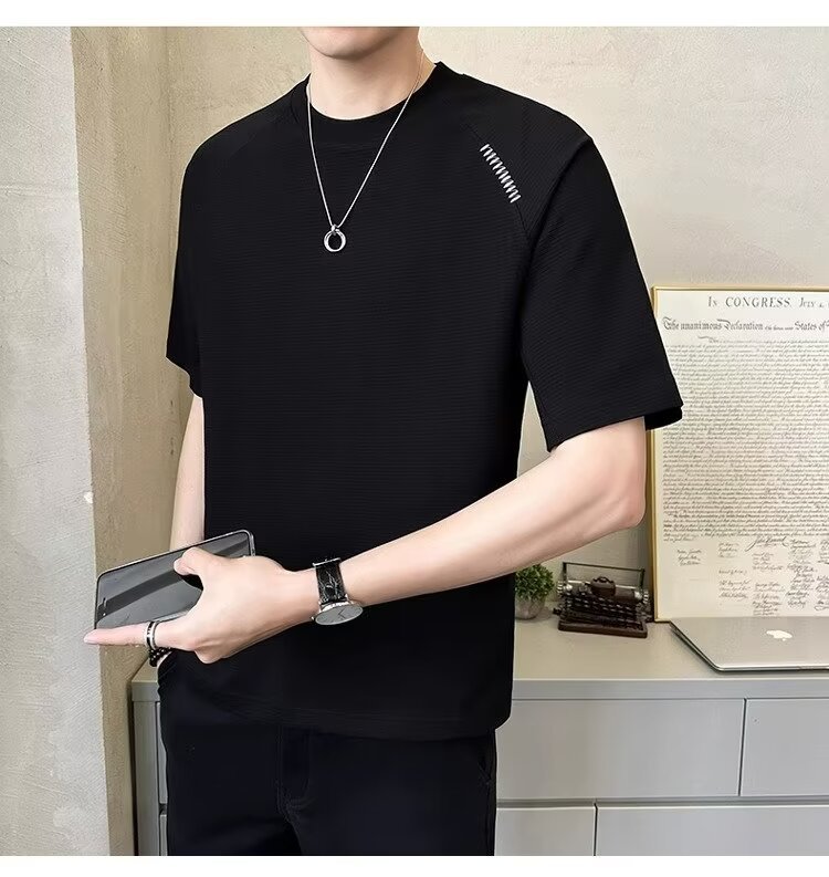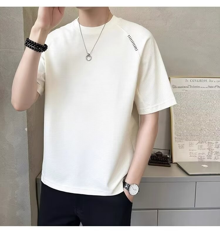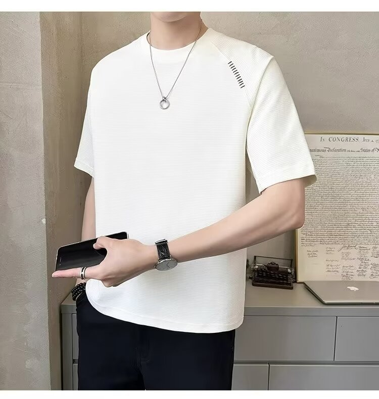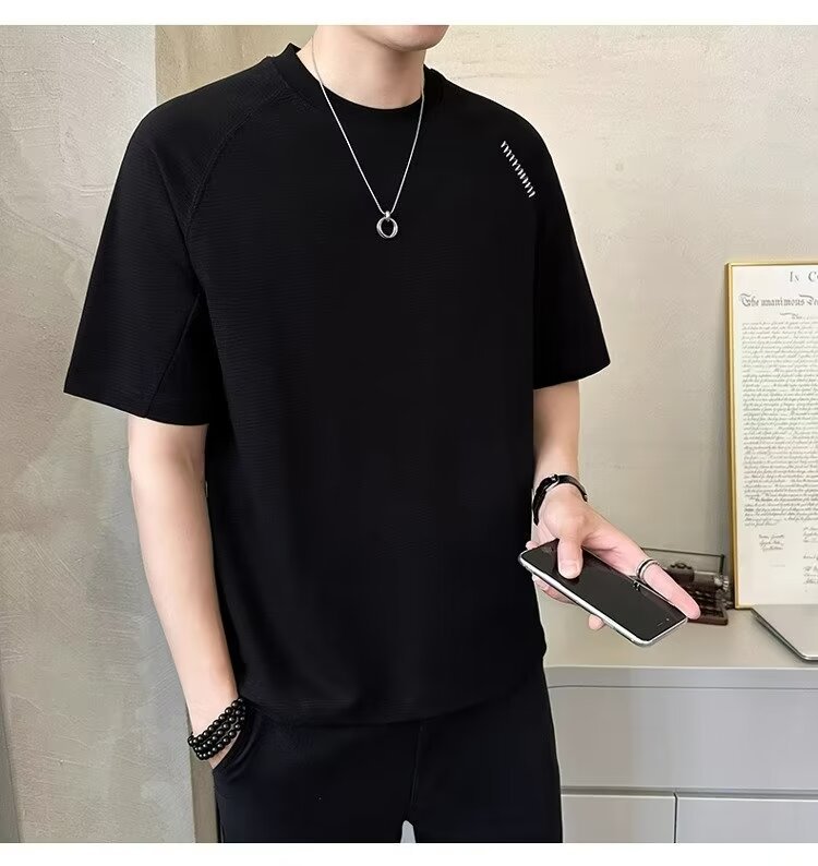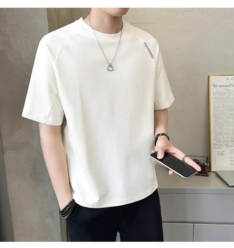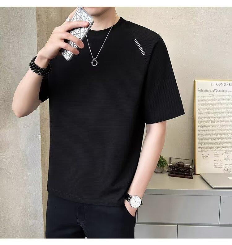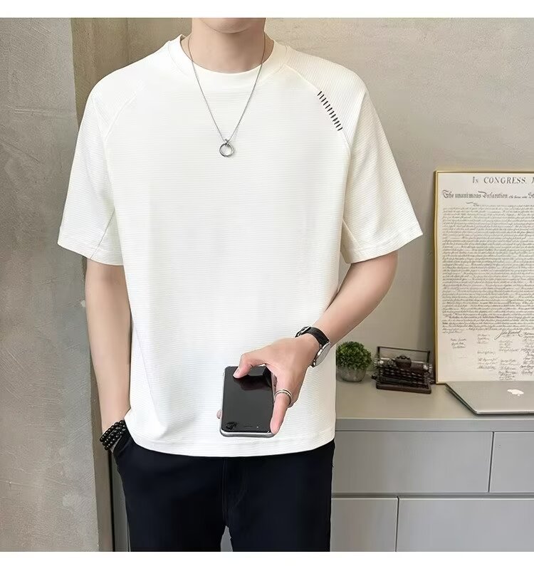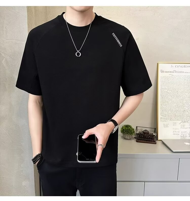 소년 반팔 티셔츠 느슨한 남자 최고 여름 2024 새로운 간단한 통기성 라운드 넥 소년 여름 옷스토어 가기