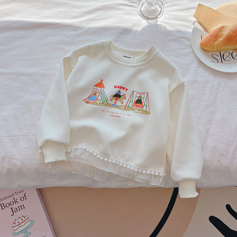 소녀 가을 새로운 만화 달콤한 큰 어린이 조끼 110-160 야드 패션 인쇄 긴 소매 T스토어 가기