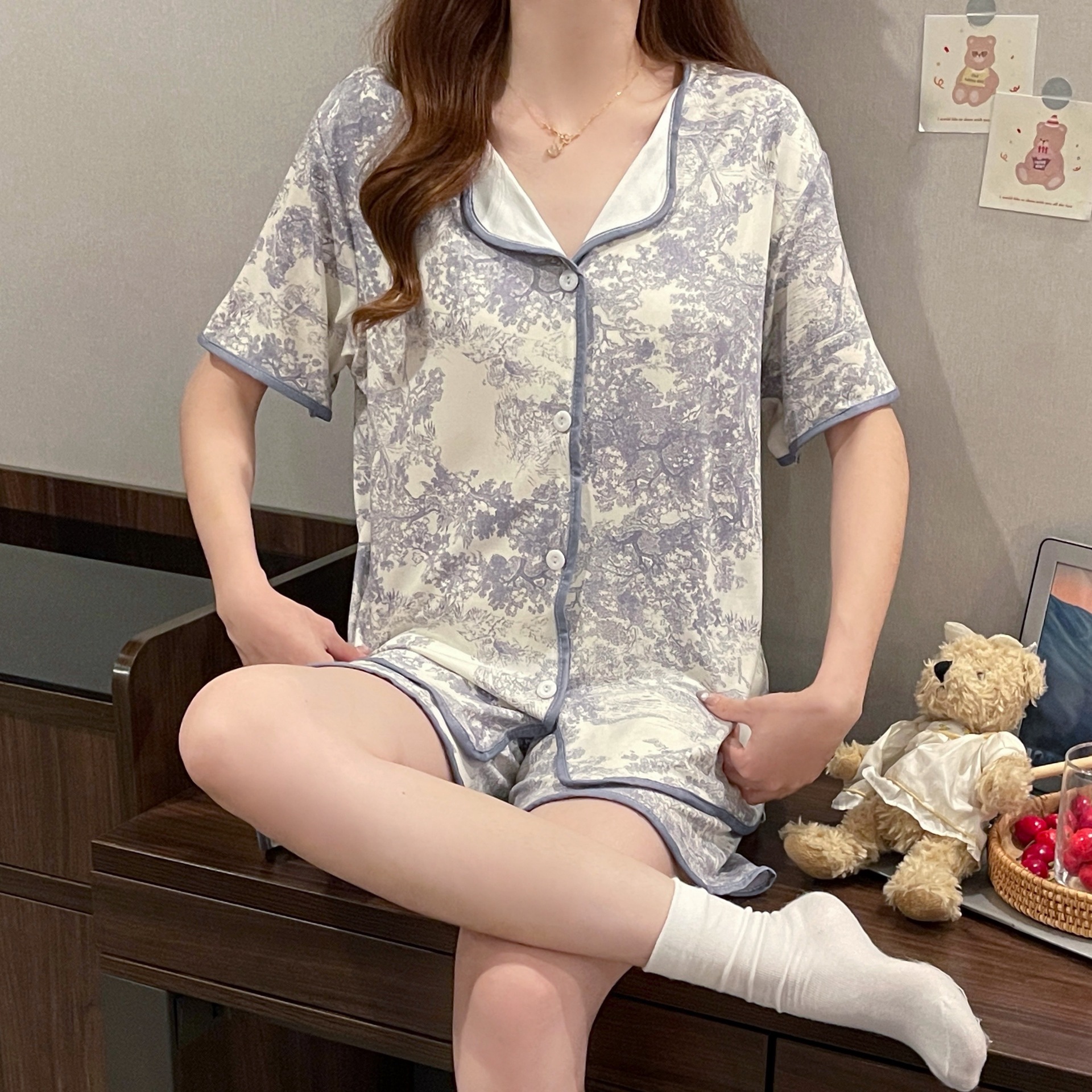 여름 청소년 여성을 위한 국경 간 인기 잠옷, 누드 가슴 패드, 달콤한 기질, 캐주얼하고 패셔너블한 홈웨어 세트스토어 가기