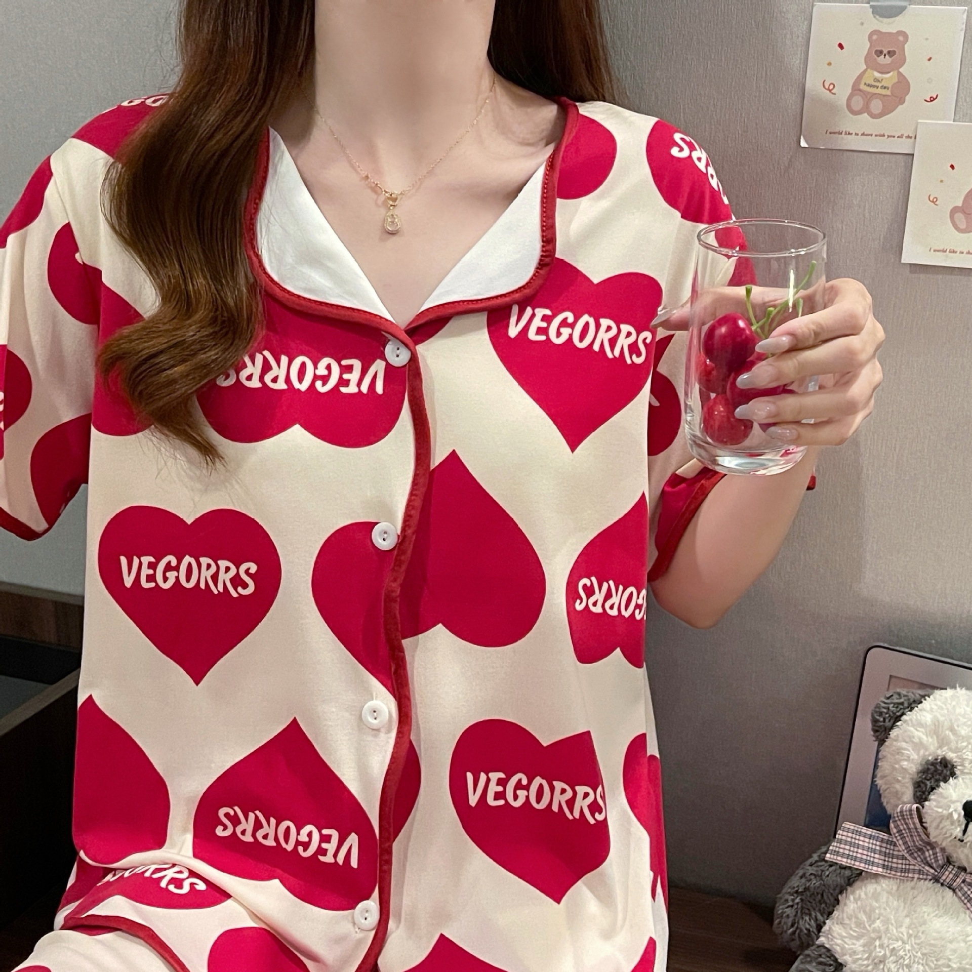 여름 청소년 여성을 위한 국경 간 인기 잠옷, 누드 가슴 패드, 달콤한 기질, 캐주얼하고 패셔너블한 홈웨어 세트