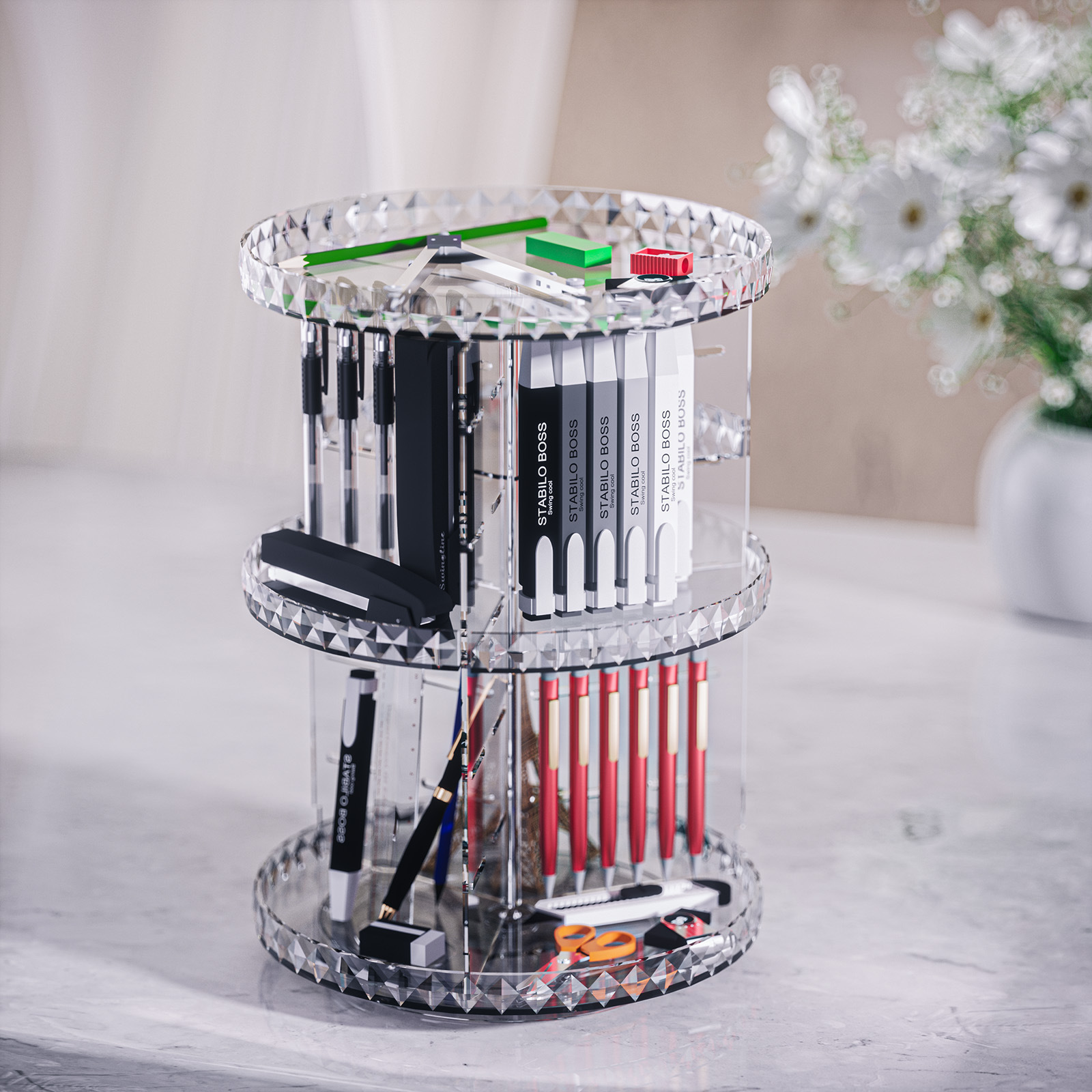 • [회전수납선반] 3단 다이아몬드 패턴