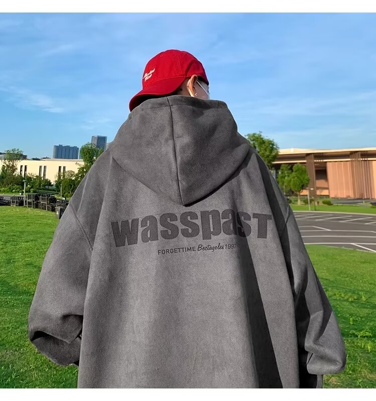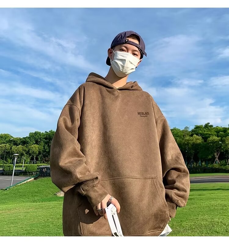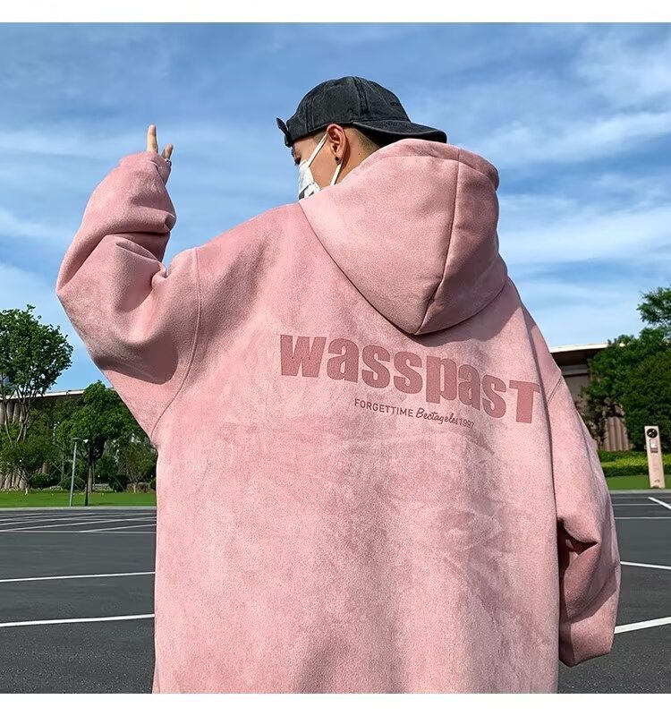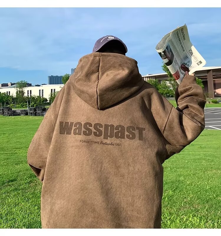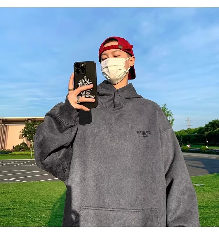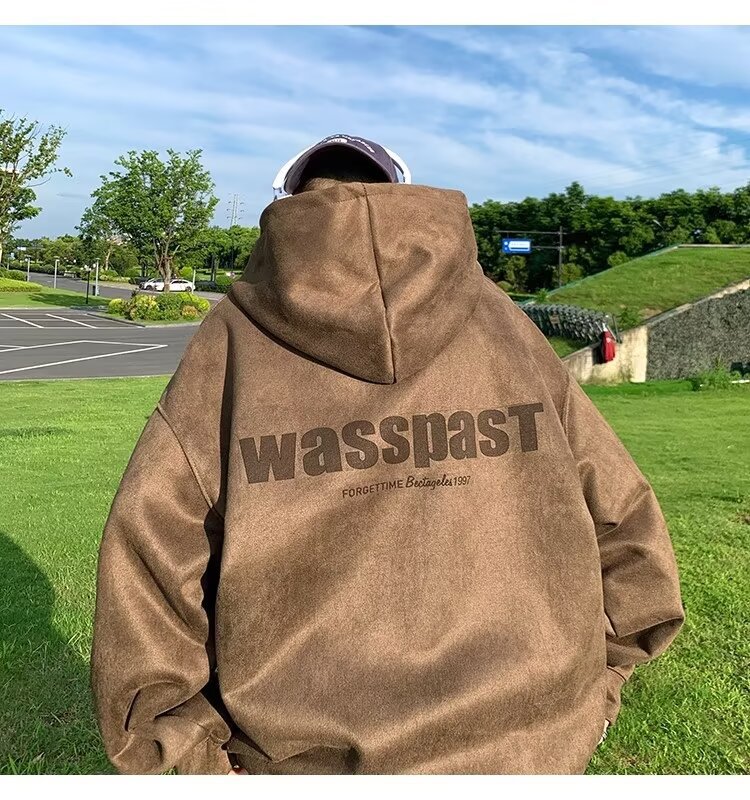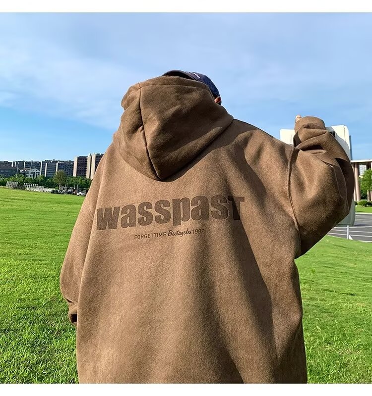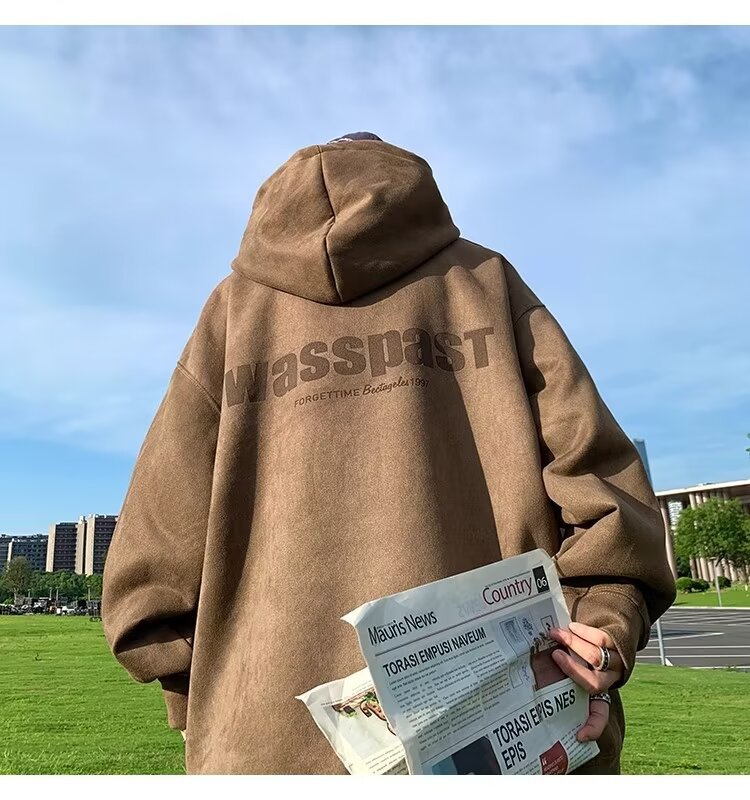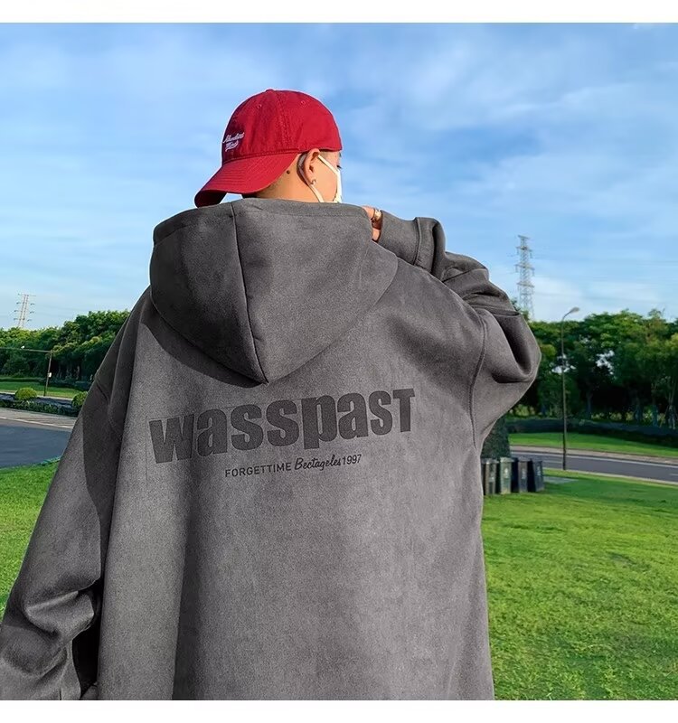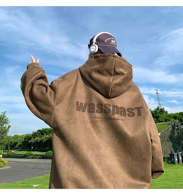 편지 스웨이드 600g 헤비급 뻣뻣한 후드 조끼 남자의 미국 분위기는 가을과 겨울에 두껍게 기모