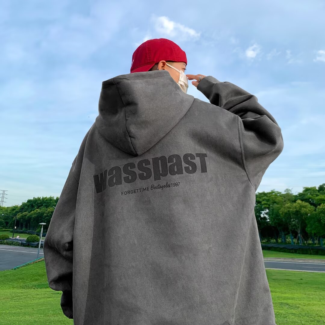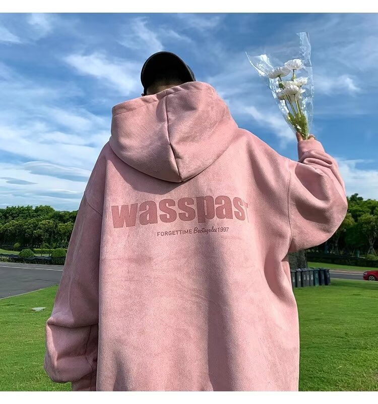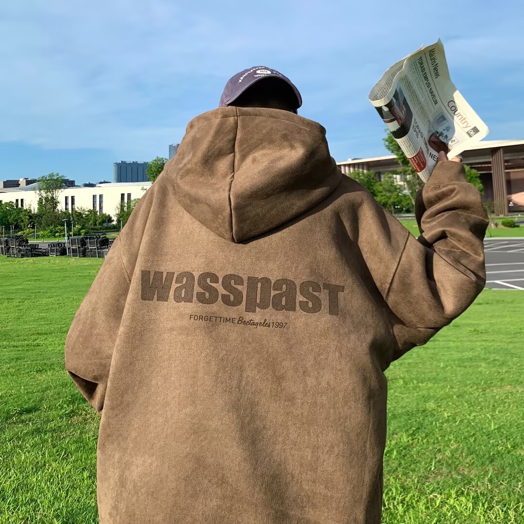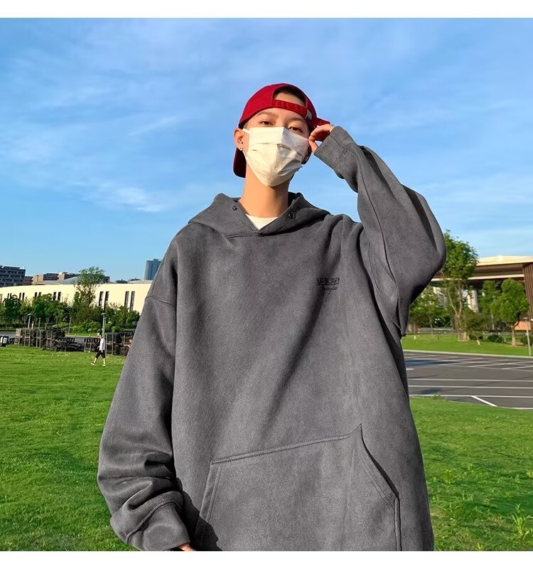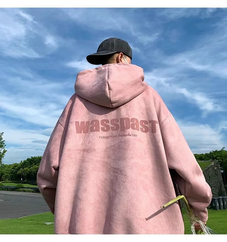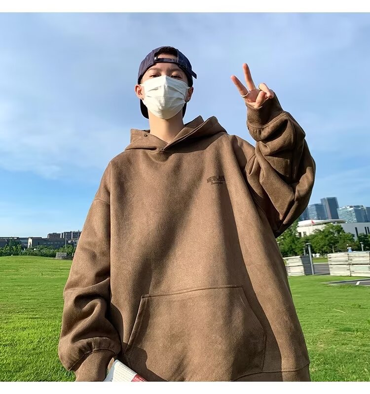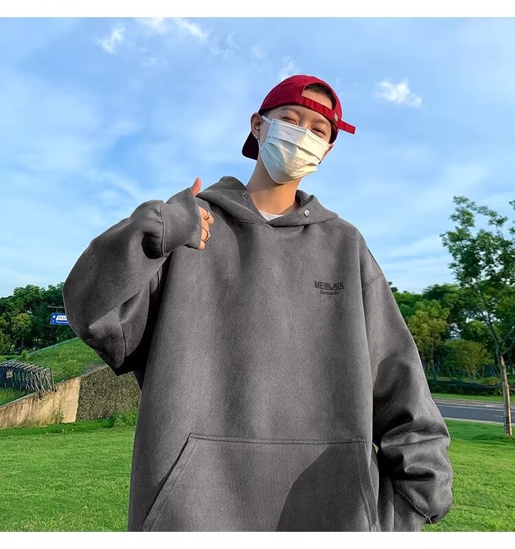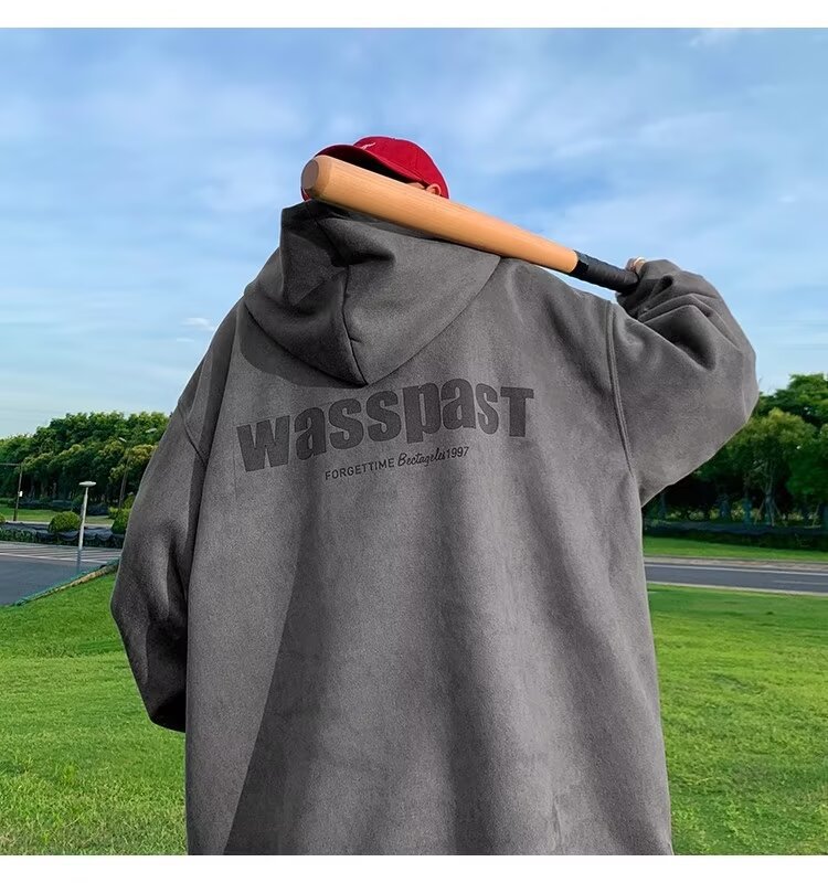 편지 스웨이드 600g 헤비급 뻣뻣한 후드 조끼 남자의 미국 분위기는 가을과 겨울에 두껍게 기모