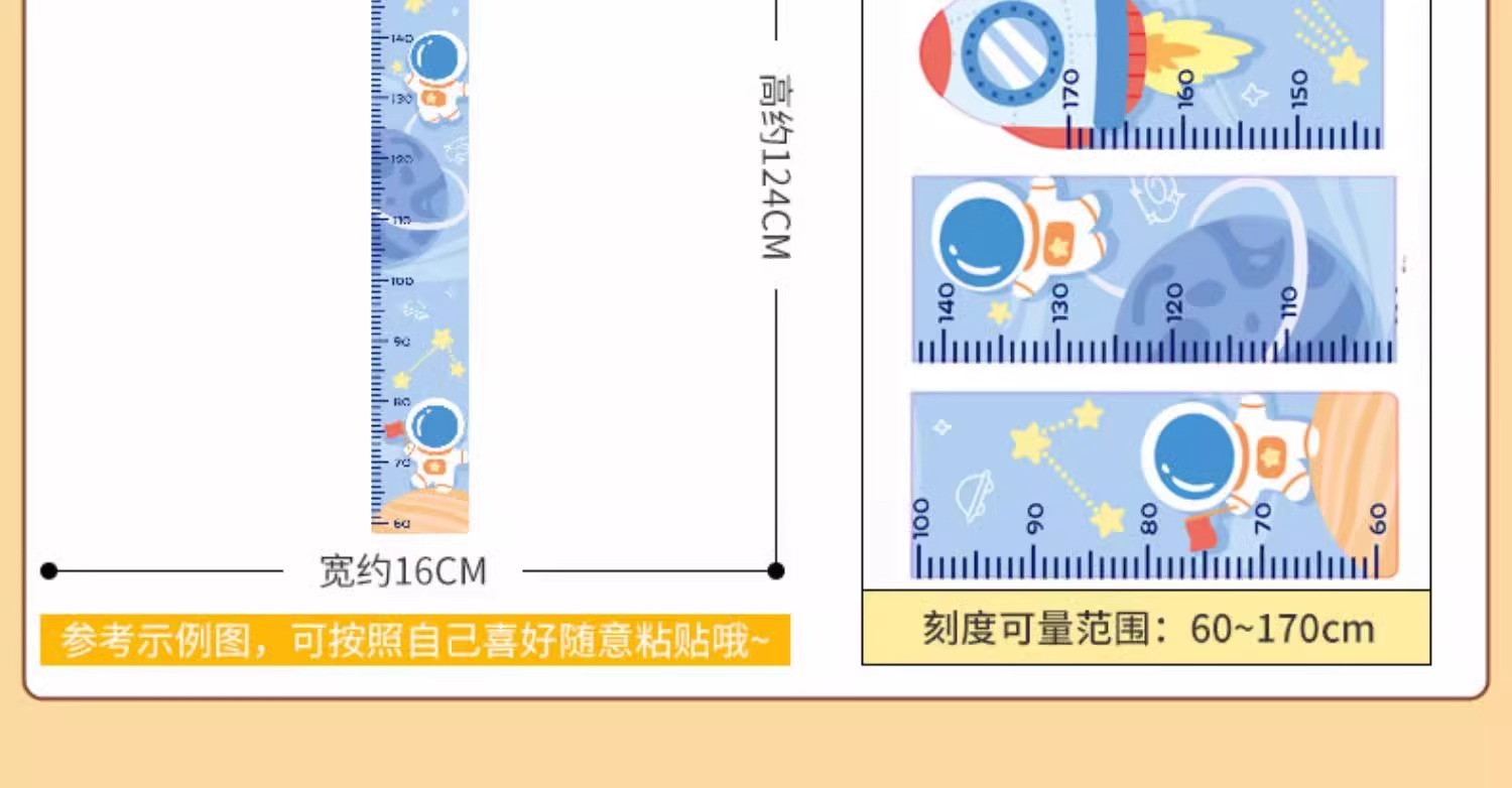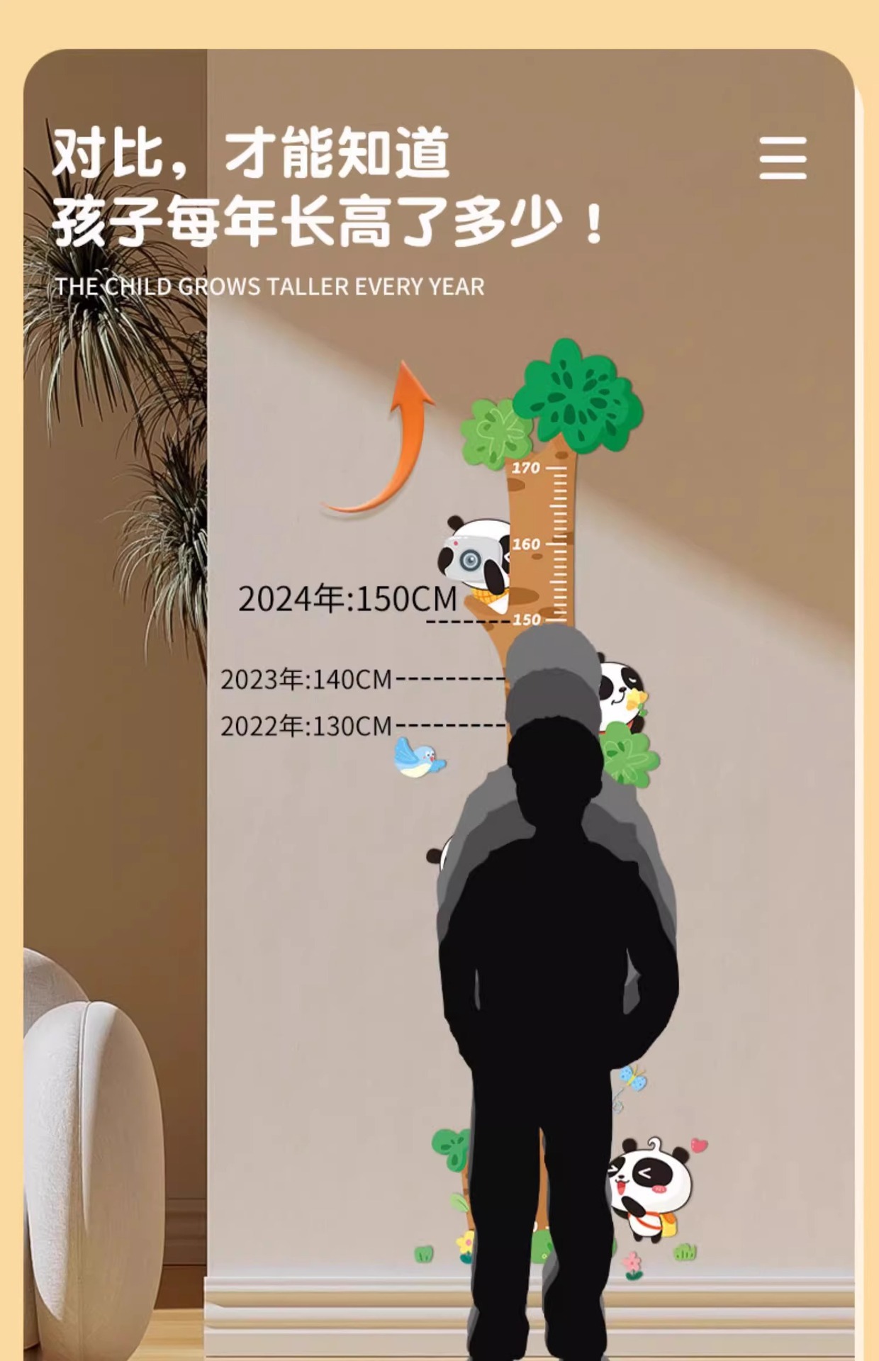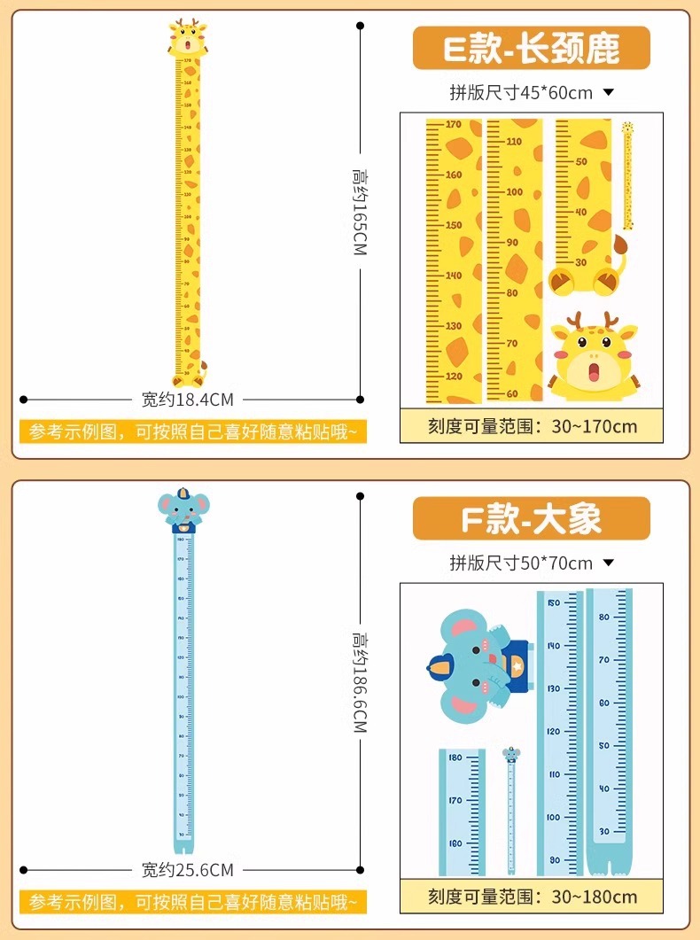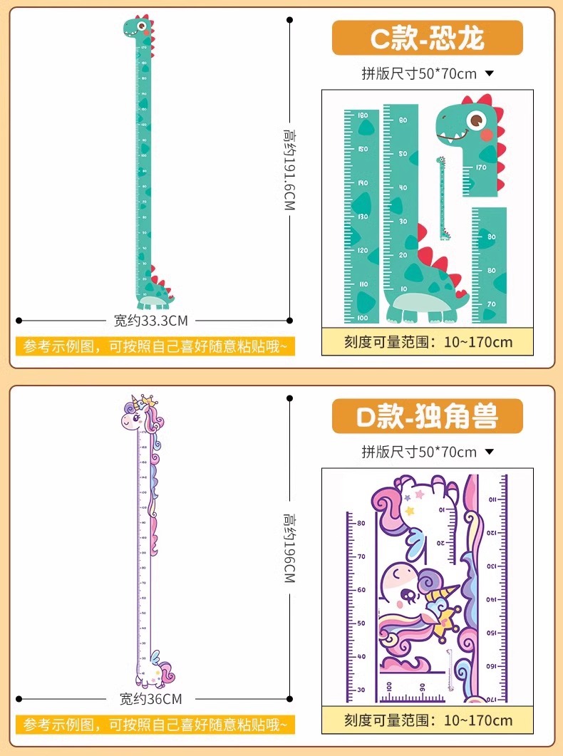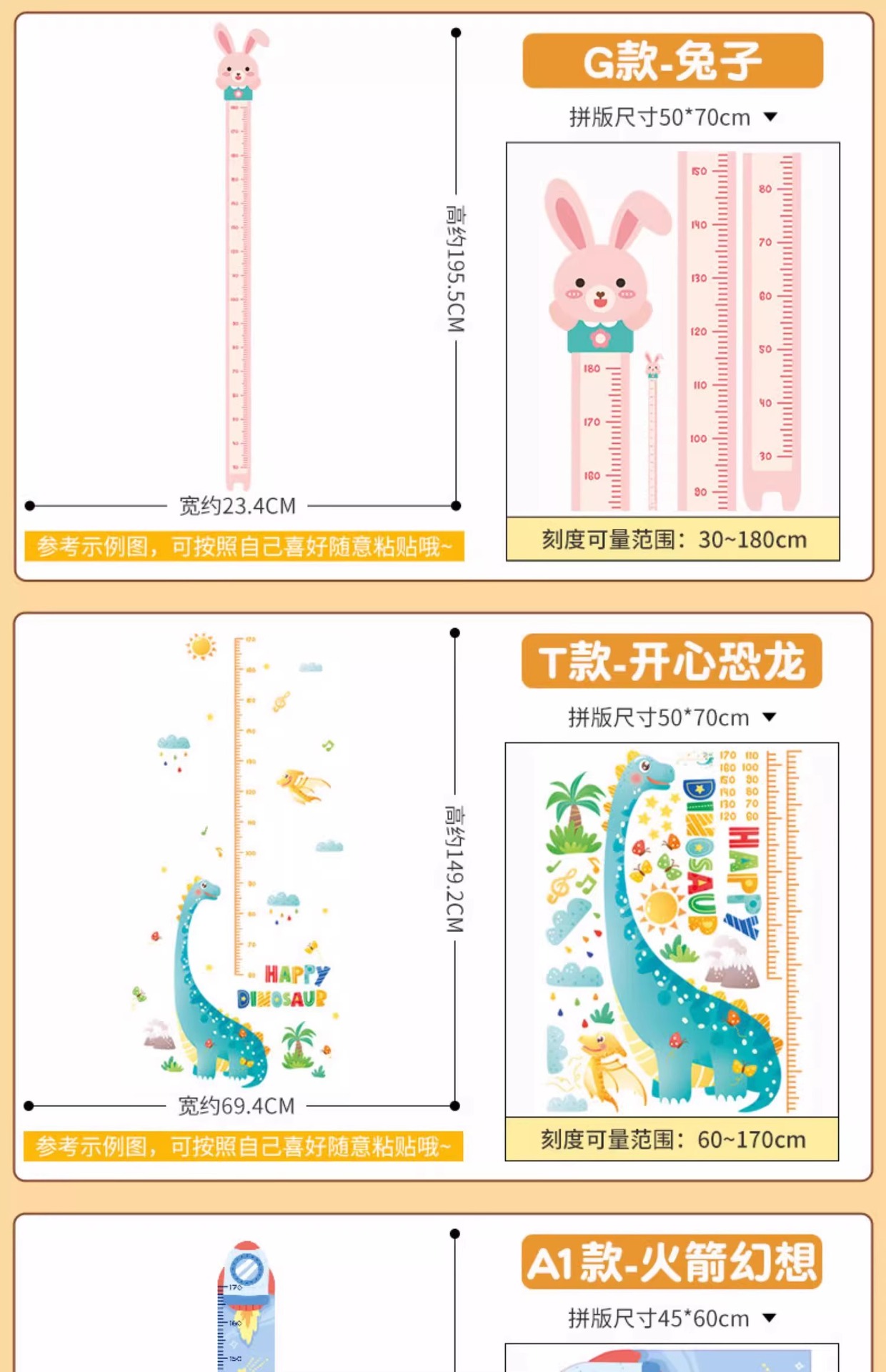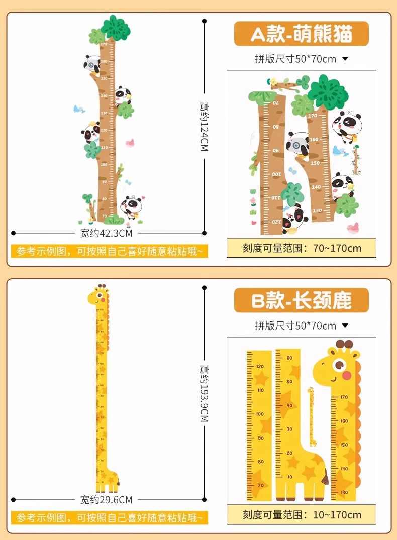 어린이 높이 벽 스티커 측정 눈금자 어린이 아기 높이 만화 높이 스티커 벽지 이동식스토어 가기
