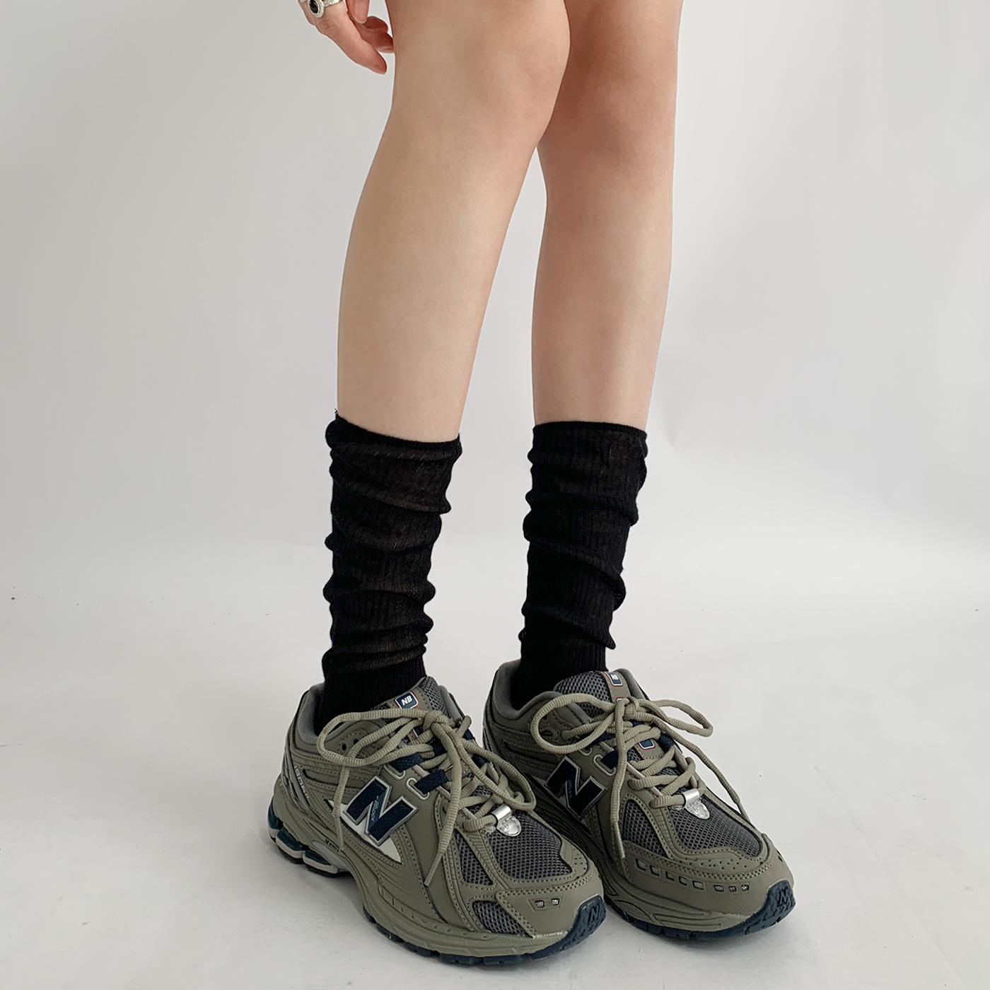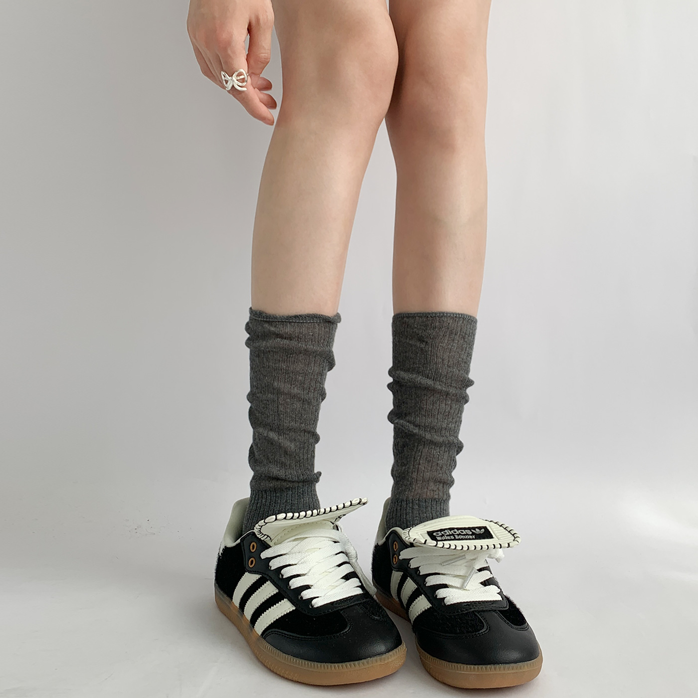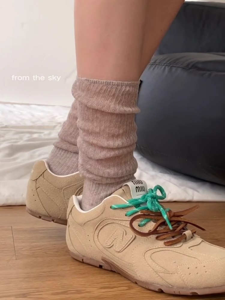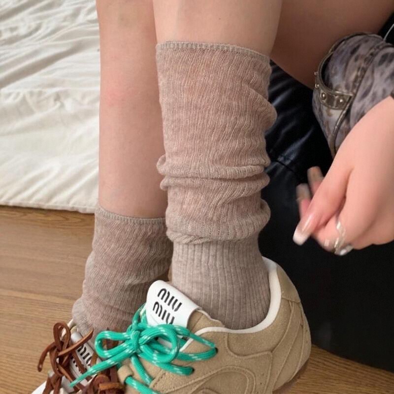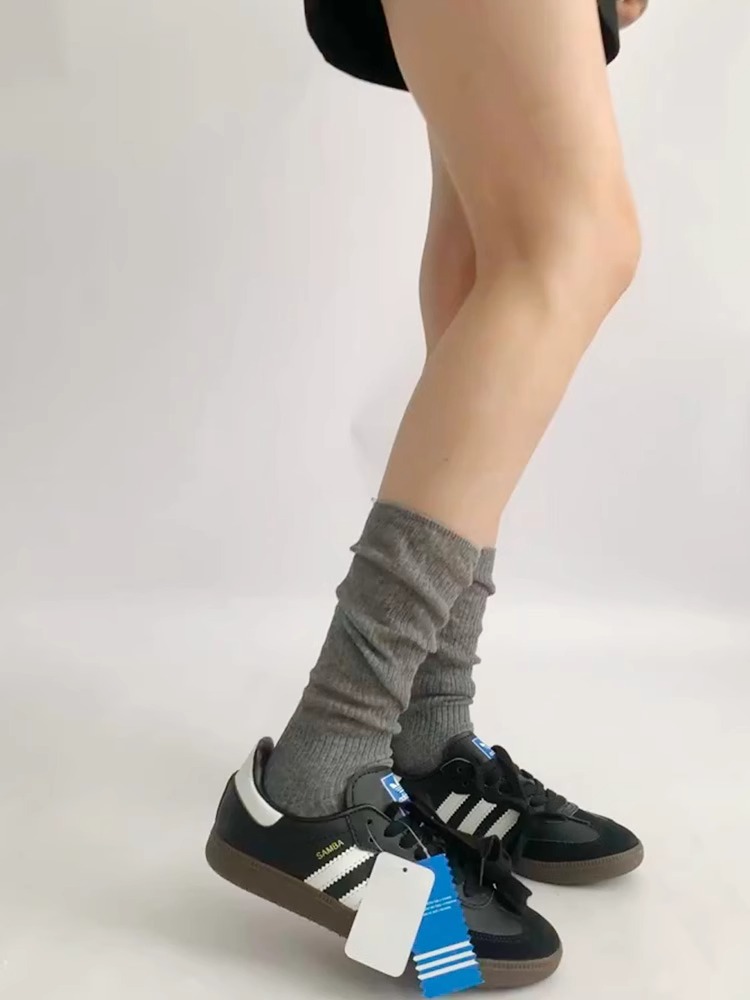가을 얇은 새로운 단색 바느질 중간 길이 양말 여성의 통기성 회색 JK 송아지 양말 간단한 아카데미 스타일스토어 가기