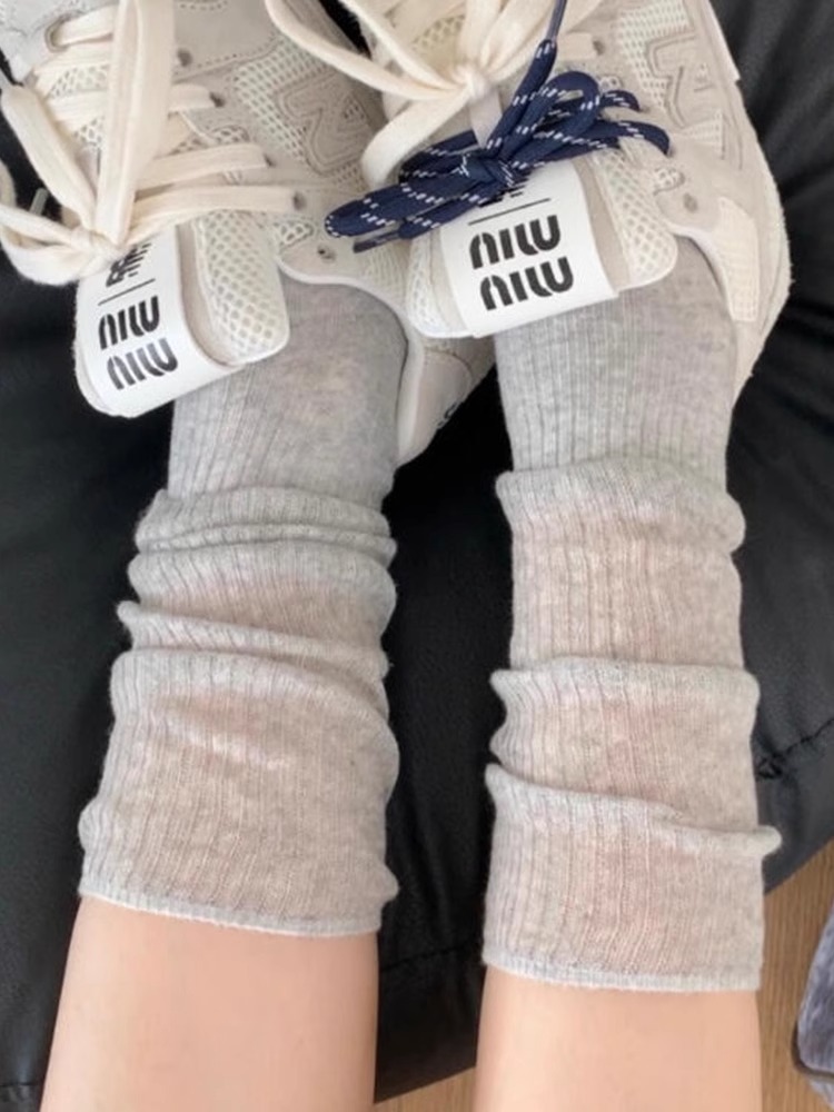 가을 얇은 새로운 단색 바느질 중간 길이 양말 여성의 통기성 회색 JK 송아지 양말 간단한 아카데미 스타일