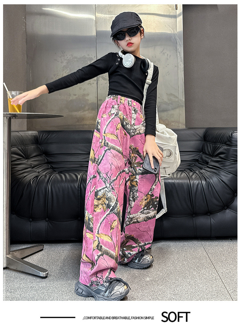 소녀 가을 세트 2024 새로운 패션 소녀 한국 스타일 큰 어린이 서양식 슬림면 바지