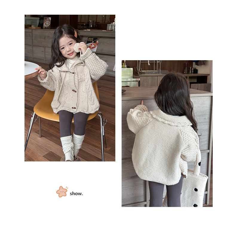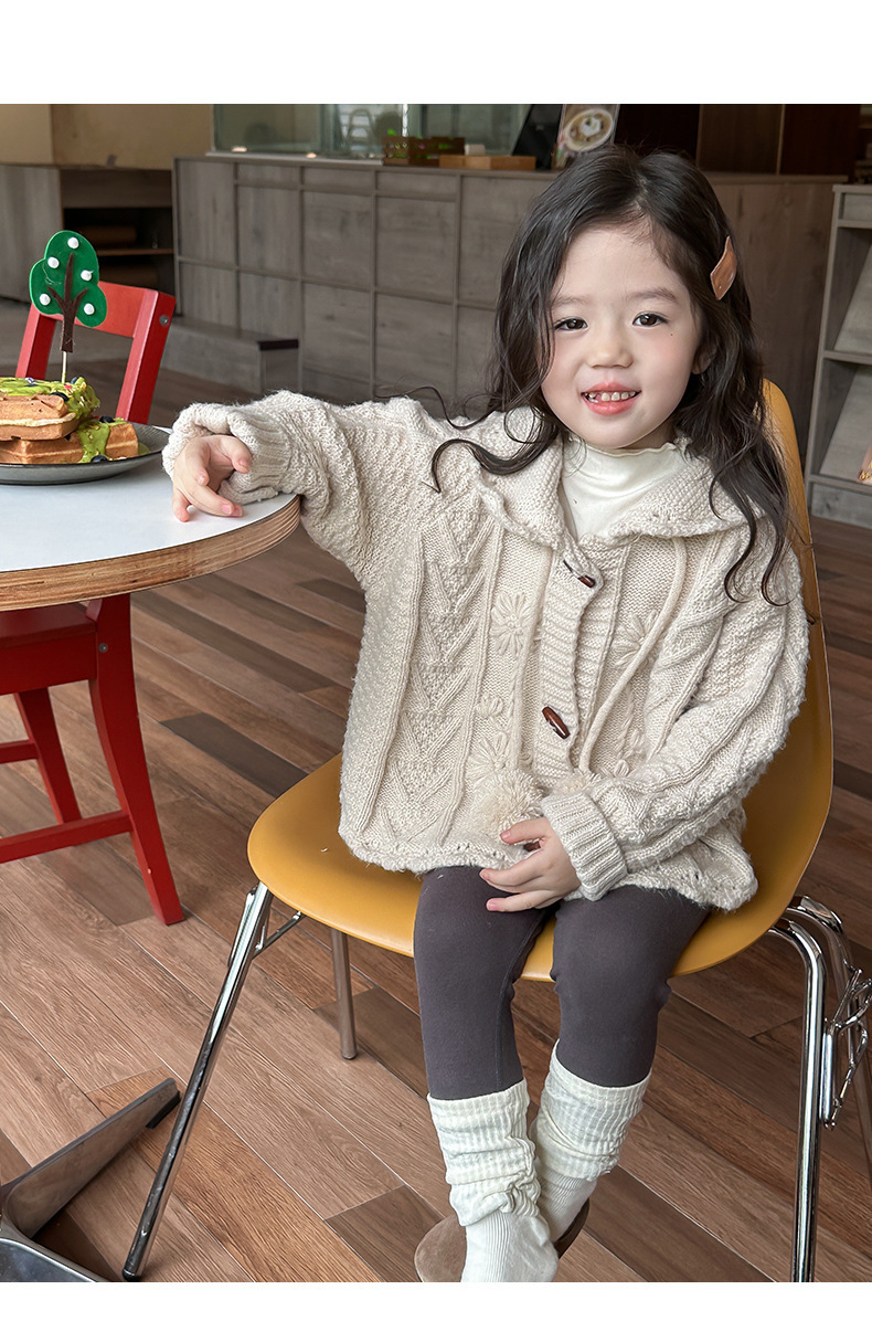 한국 아동복 2025 가을 소녀 후드 트위스트 스웨터 중소 어린이 패션 탑 대외 무역 도매스토어 가기