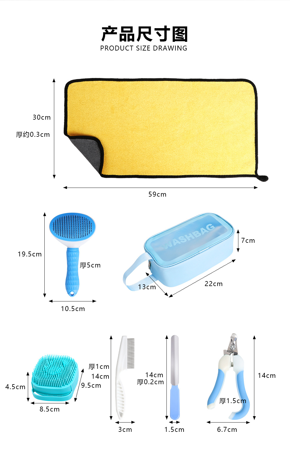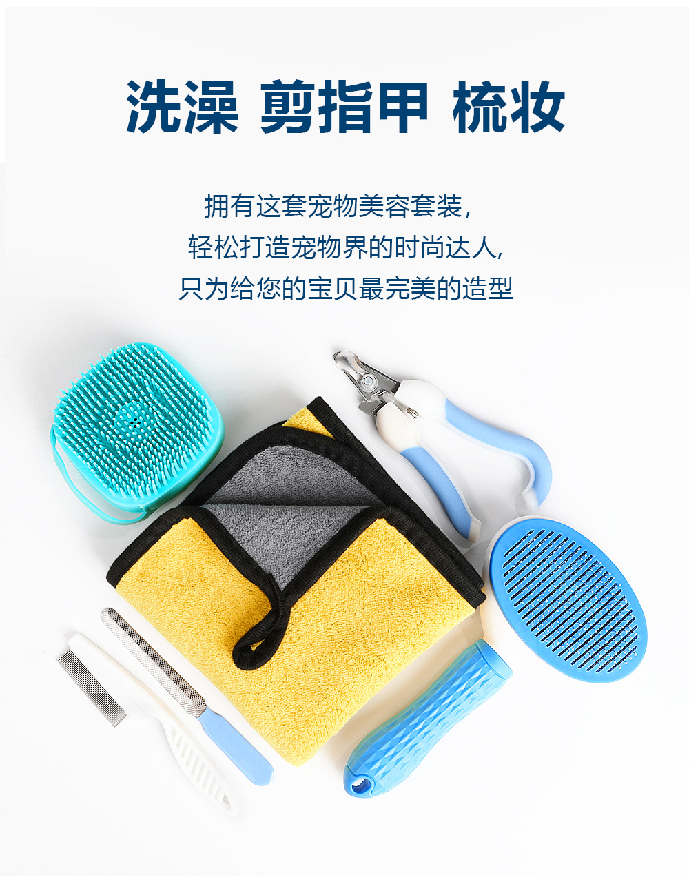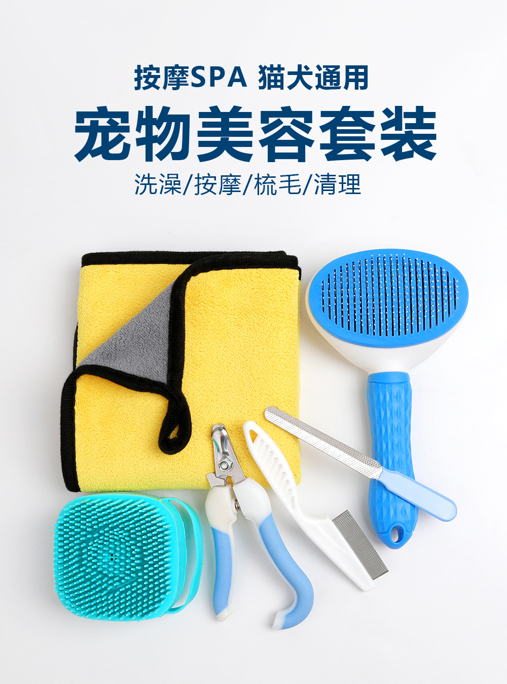 애완 동물 미용 세트 청소 목욕 마사지 빗 머리 청소 빗 수건 벼룩 빗 고양이와 개를위한 범용스토어 가기