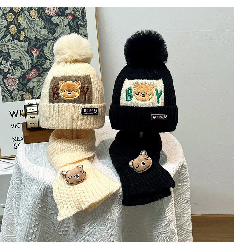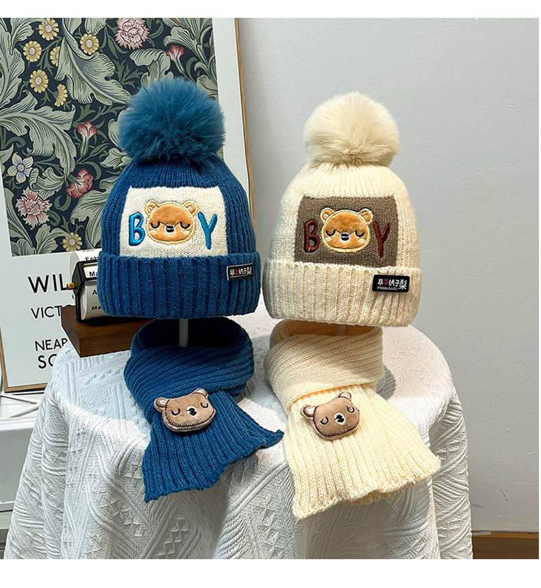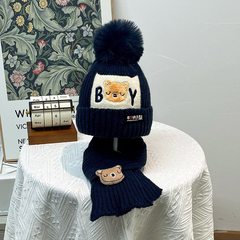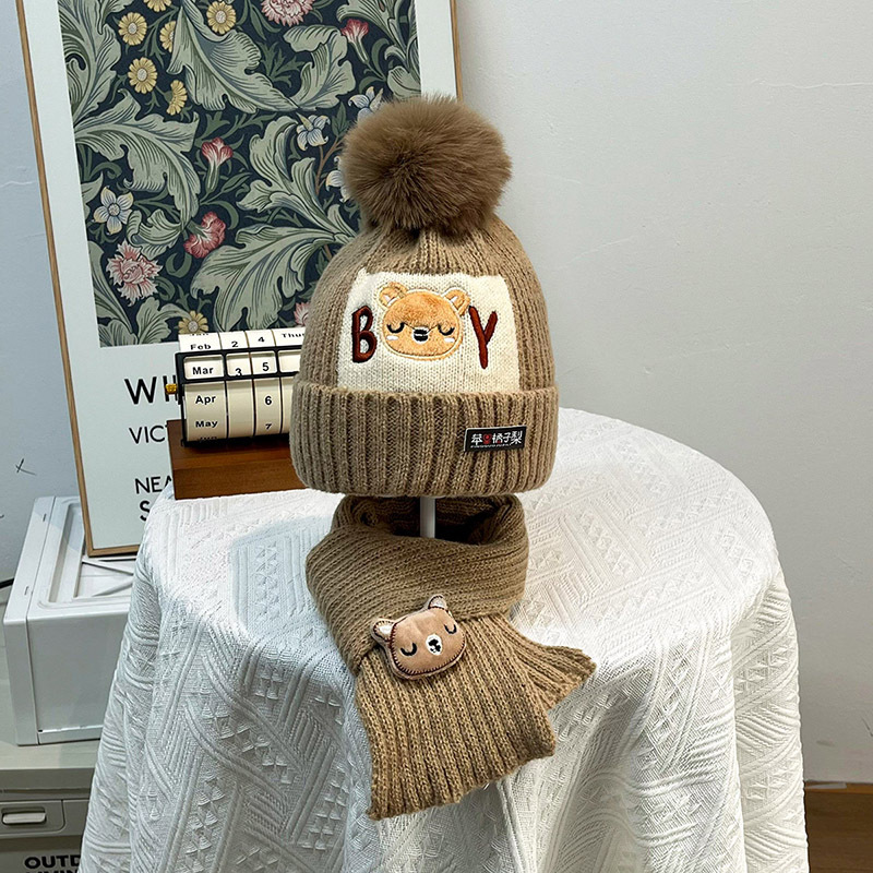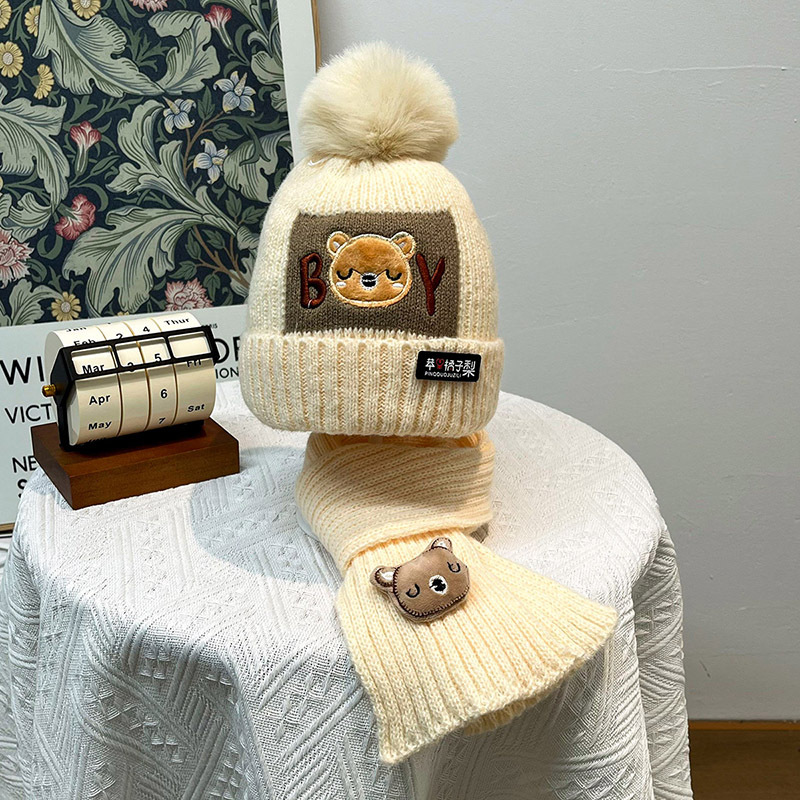 가을과 겨울 어린이 모자 소년 곰 양모 모자 소녀 니트 면화 따뜻한 아기 모자 스카프 투피스 세트