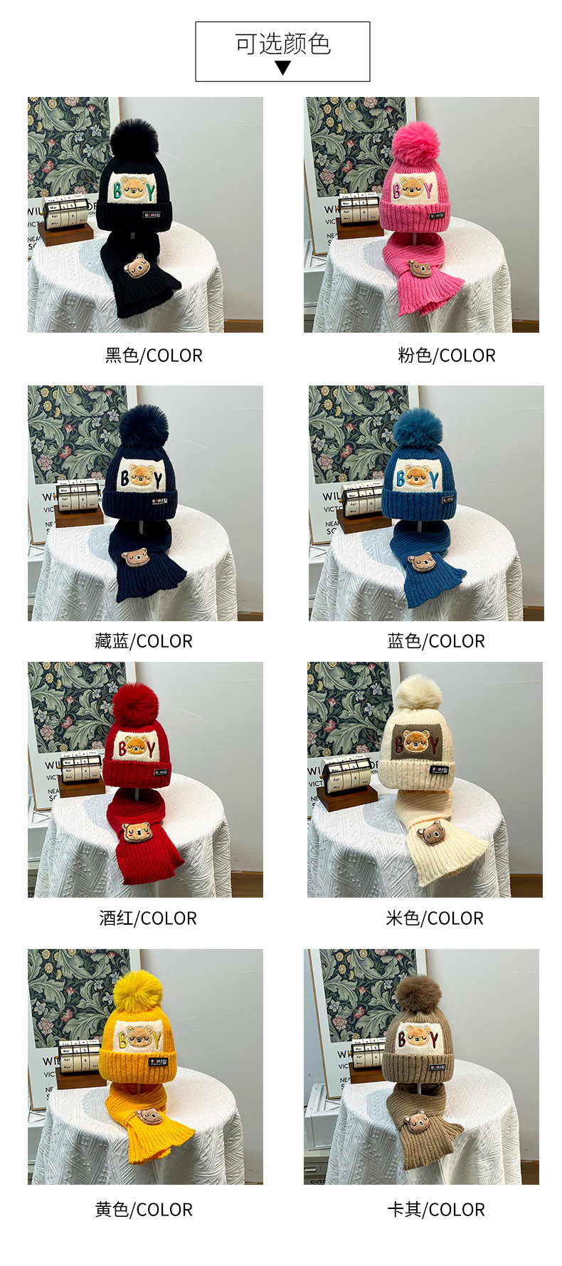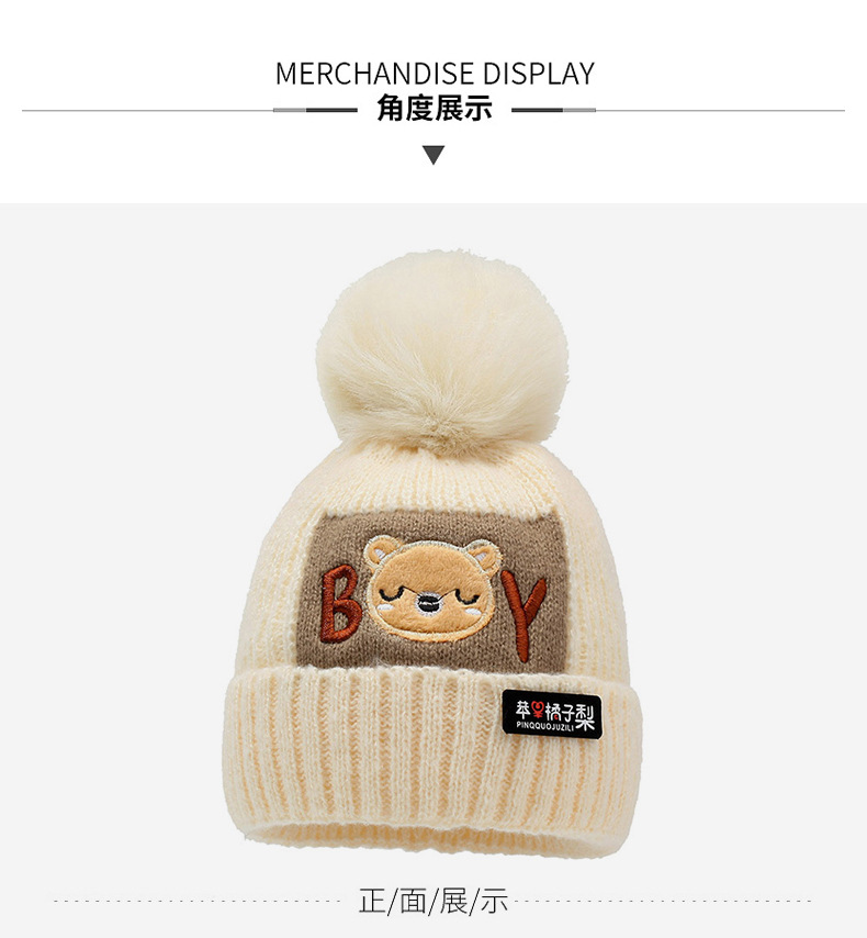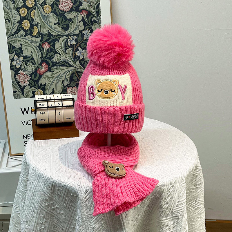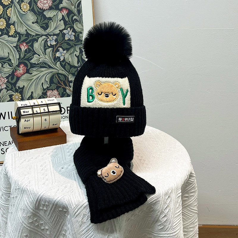 가을과 겨울 어린이 모자 소년 곰 양모 모자 소녀 니트 면화 따뜻한 아기 모자 스카프 투피스 세트