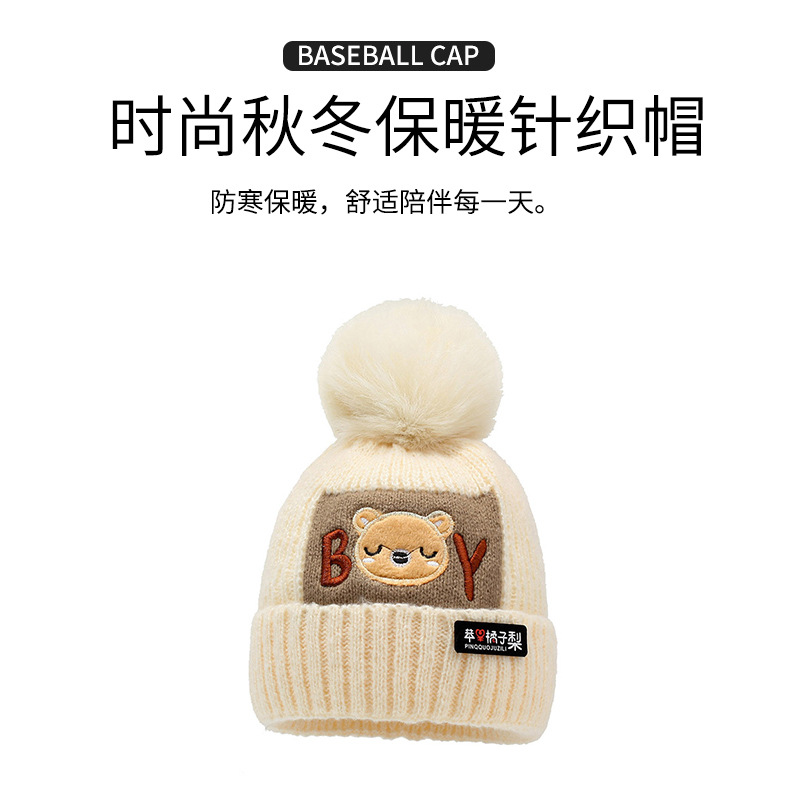 가을과 겨울 어린이 모자 소년 곰 양모 모자 소녀 니트 면화 따뜻한 아기 모자 스카프 투피스 세트스토어 가기