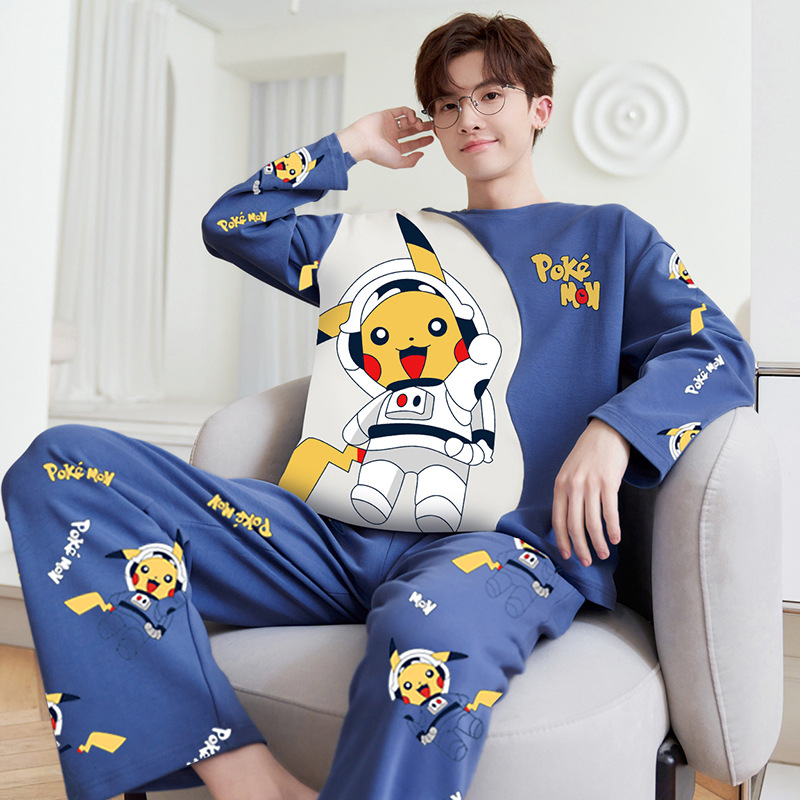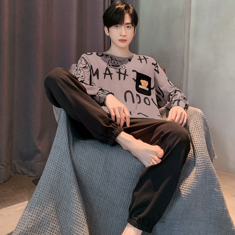 남자 잠옷 봄과 가을 긴 소매 만화 스타일 플러스 사이즈 청소년 세트 소년 캐주얼 겉옷 홈 옷스토어 가기