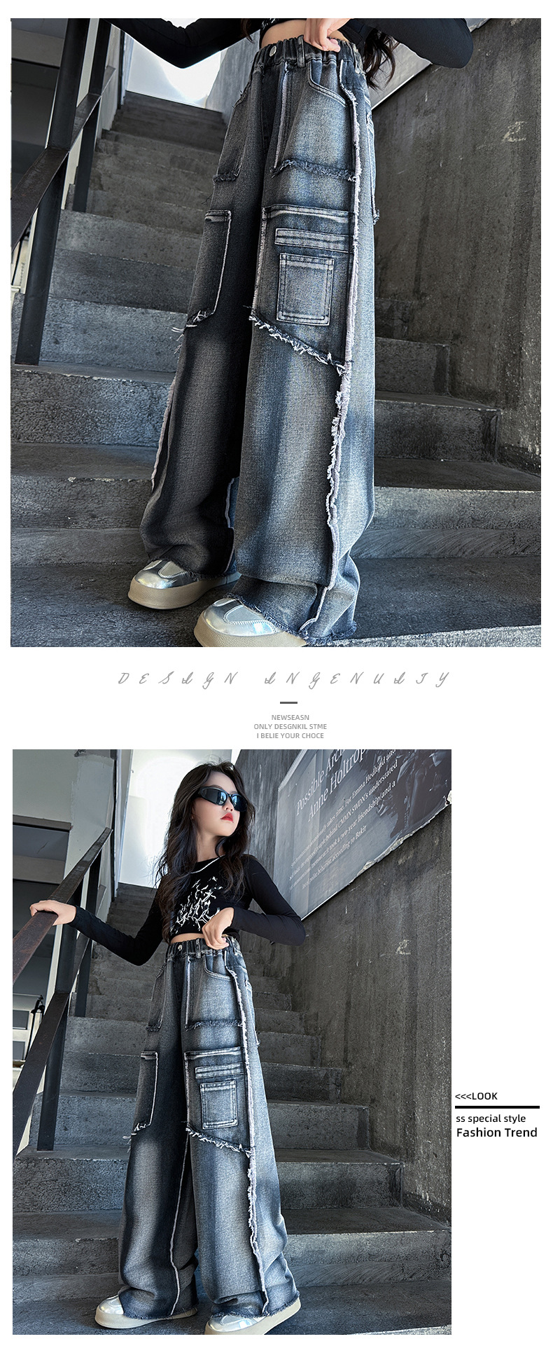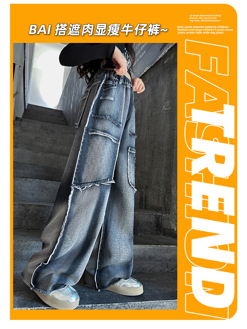 소녀의 봄과 가을 청바지 2024 새로운 패션 소녀 한국 스타일 중대형 어린이 광장 데님