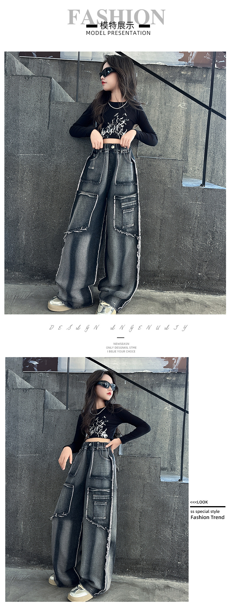 소녀의 봄과 가을 청바지 2024 새로운 패션 소녀 한국 스타일 중대형 어린이 광장 데님스토어 가기