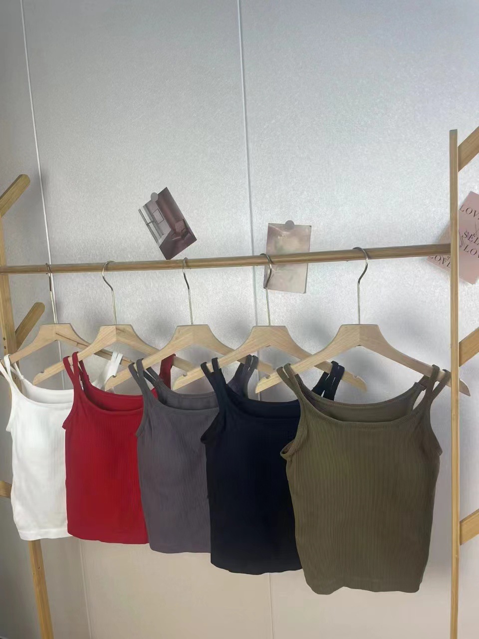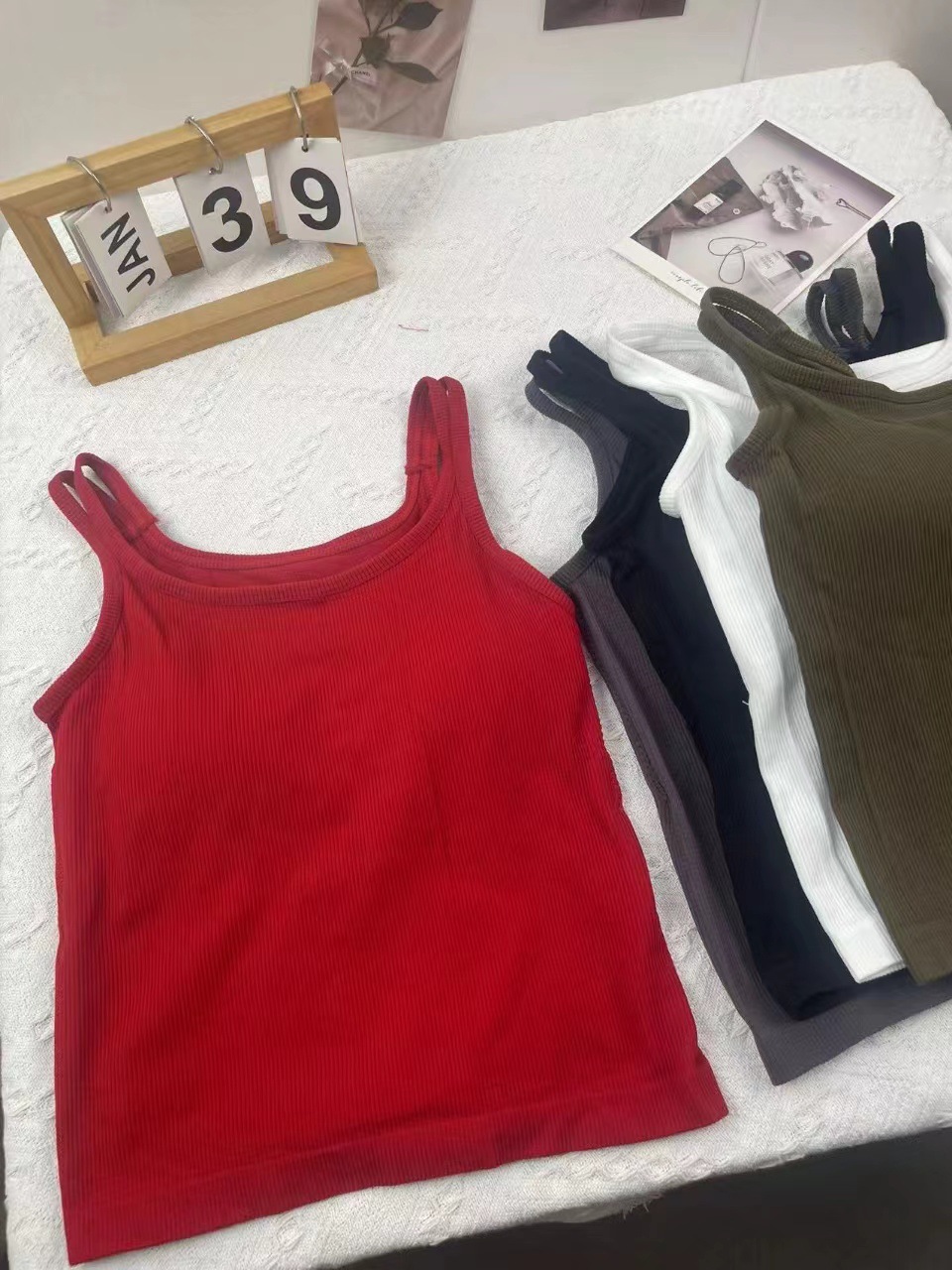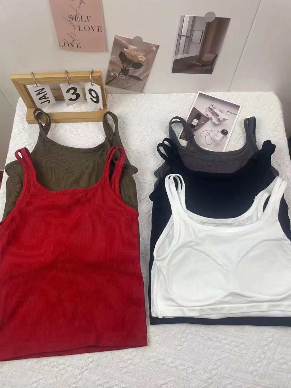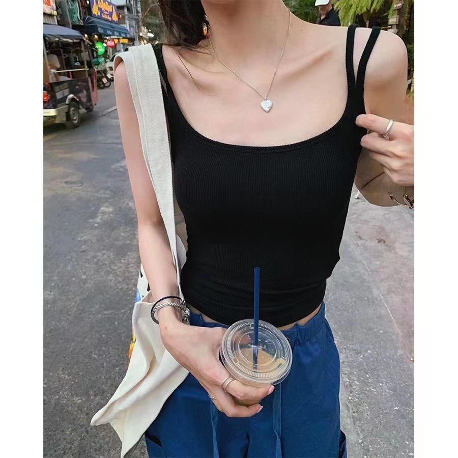 여름 피부 친화적 인 탄성 더블 숄더 스트랩 조끼 가슴 패드와 아름다운 백 스트랩리스 올 매치 내부 솔리드 컬러 탑 여성용 슬링스토어 가기