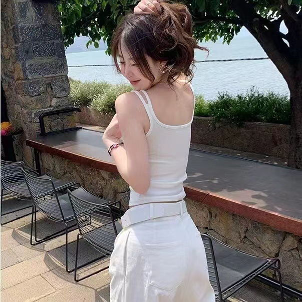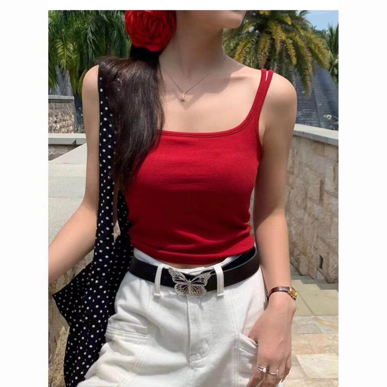 여름 피부 친화적 인 탄성 더블 숄더 스트랩 조끼 가슴 패드와 아름다운 백 스트랩리스 올 매치 내부 솔리드 컬러 탑 여성용 슬링