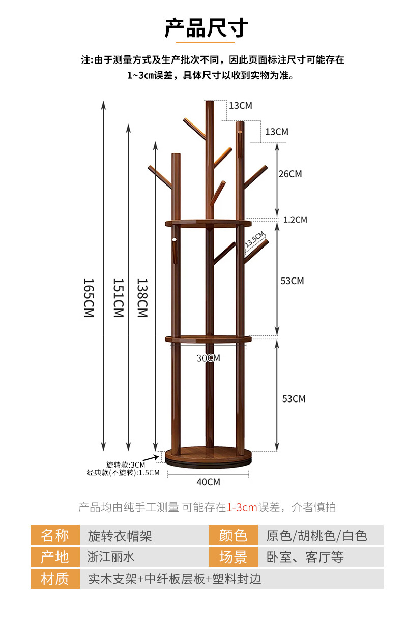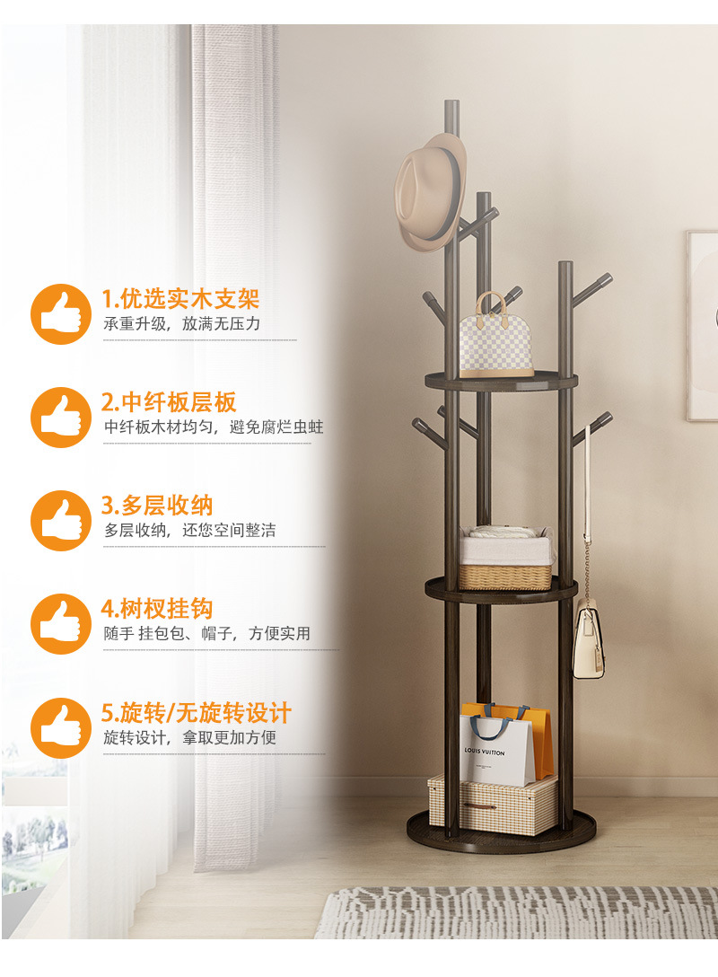 단단한 나무 회전 코트 랙 바닥 걸이 침실 가구 저장 랙 수직 옷 선반 거실 옷걸이스토어 가기