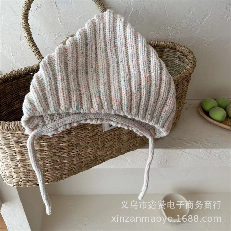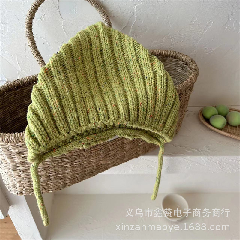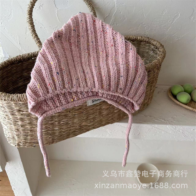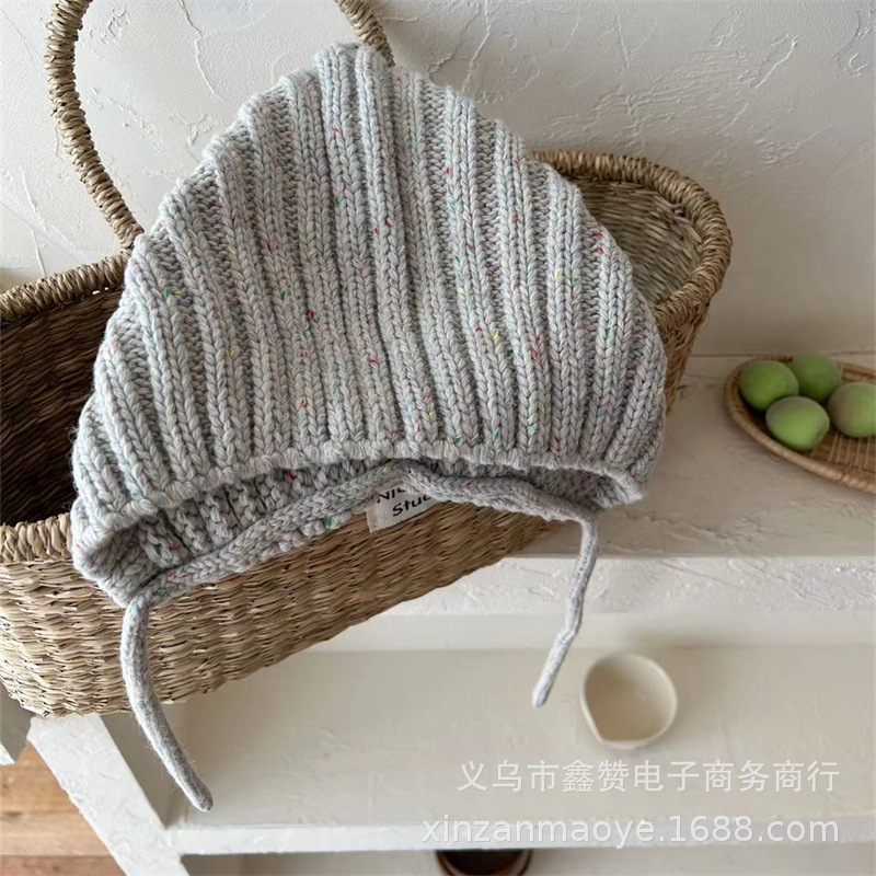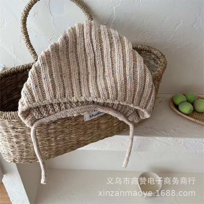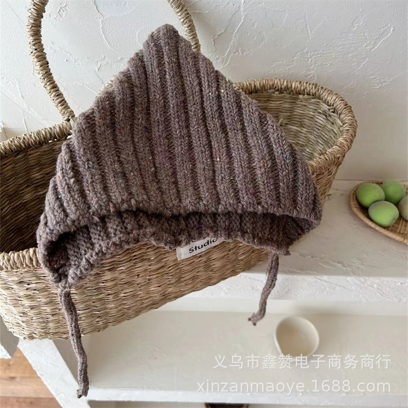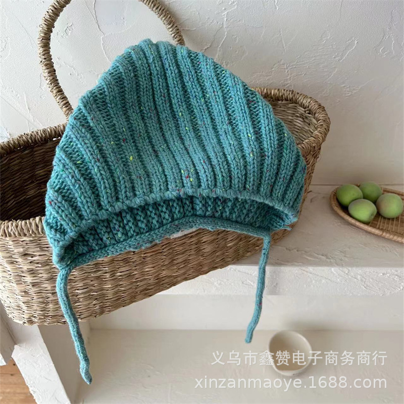 한국식 베이비 엘프 모자 가을과 겨울 따뜻한 방풍 귀 보호 레이스 업 남녀 어린이 니트 울 모자