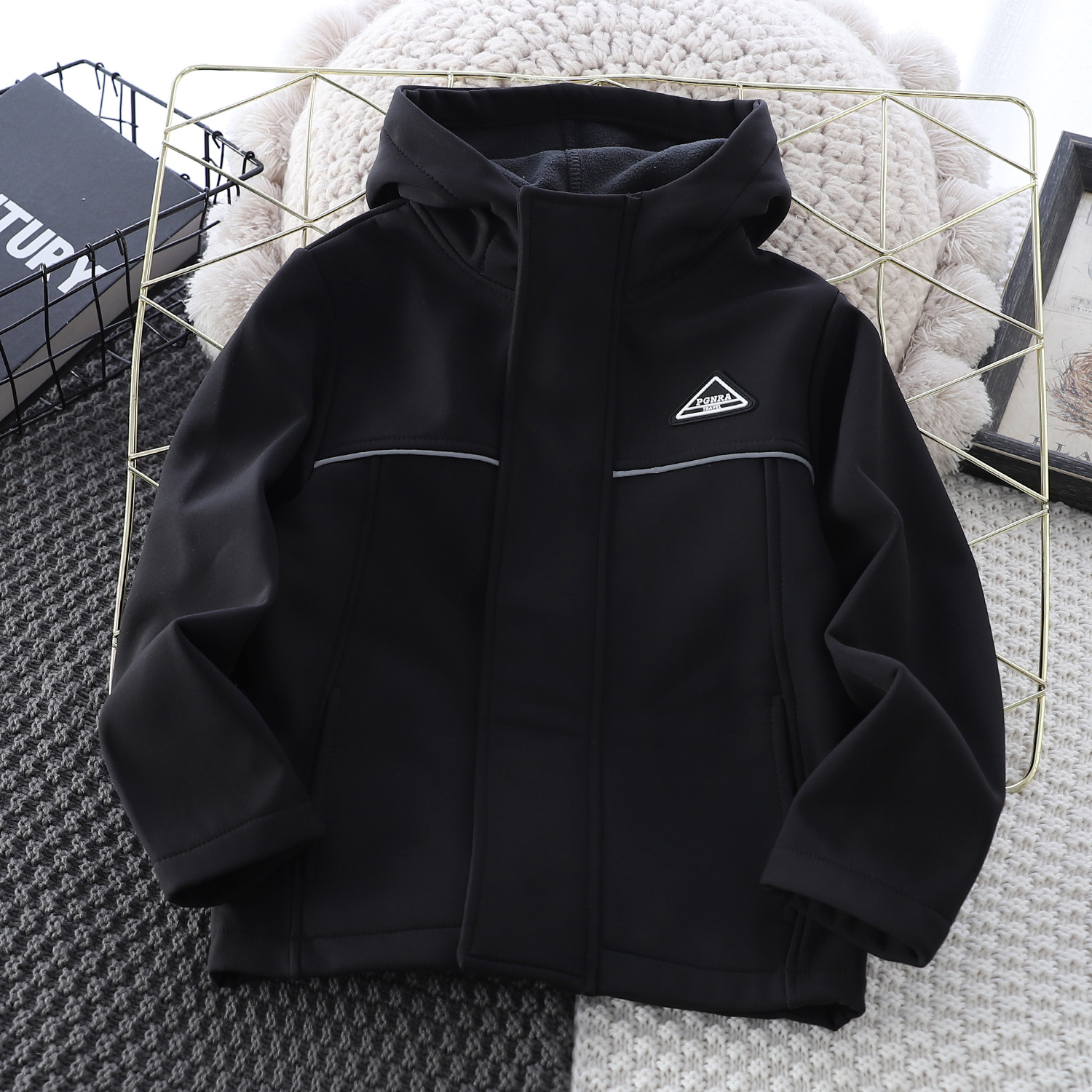 어린이 충전 옷 2024 가을 새 소년 후드 코트 세련된 트렌디 쿨 어린이 의류 유행 방풍 재킷