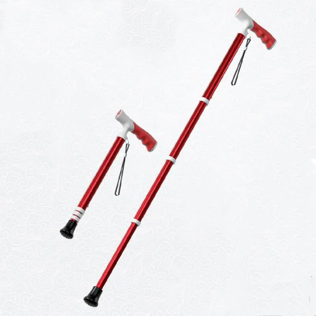 T 스트레이트 핸들 야외 등반 스틱 티타늄 합금 망원경 잠금 높이 하이킹 목발 미끄럼 방지 하이킹 스틱