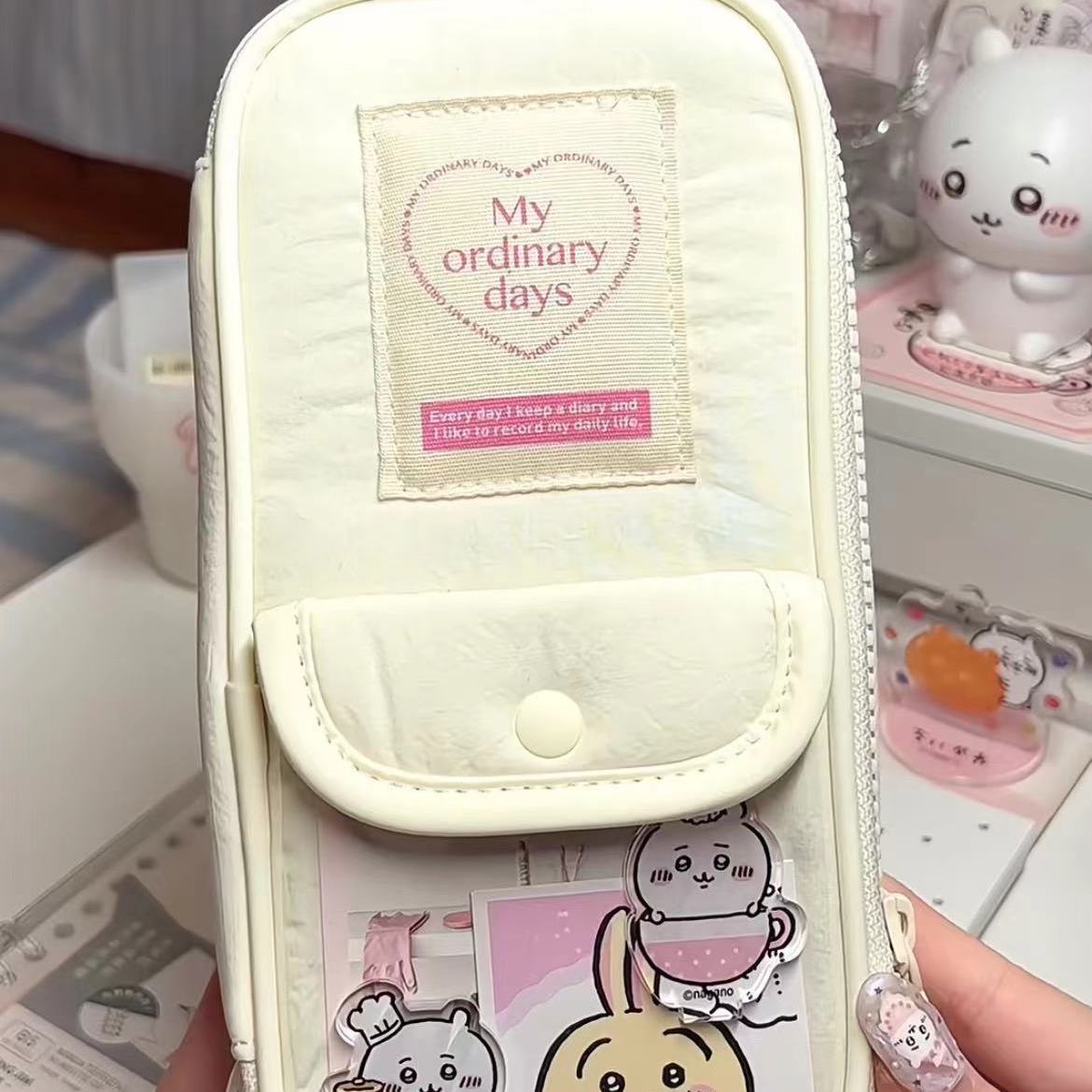 일본 Ins 스타일 레트로 더블 지퍼 연필 케이스 학생 대용량 다층 다기능 문구 보관 연필 케이스