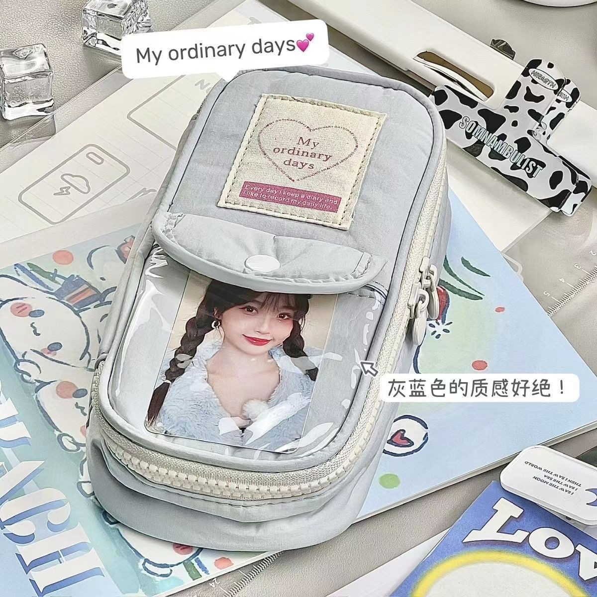일본 Ins 스타일 레트로 더블 지퍼 연필 케이스 학생 대용량 다층 다기능 문구 보관 연필 케이스스토어 가기