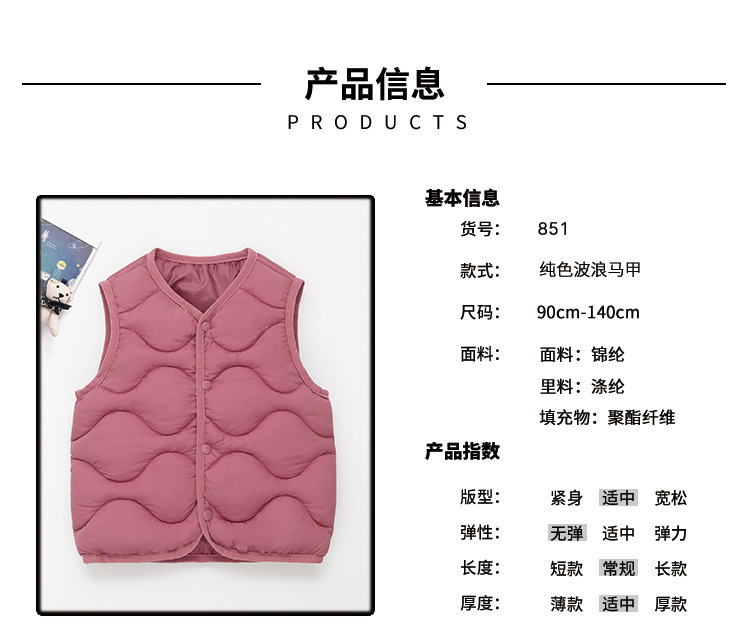 851 새로운 라이트면 패딩 재킷 아동복 조끼면 어린이 가을 및 겨울 소년 소녀 머리카락을위한 새로운 웨이브 코튼 조끼