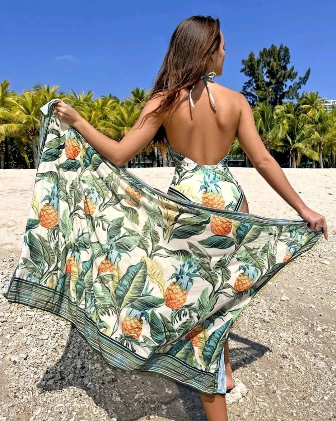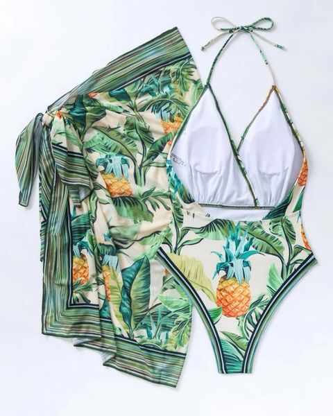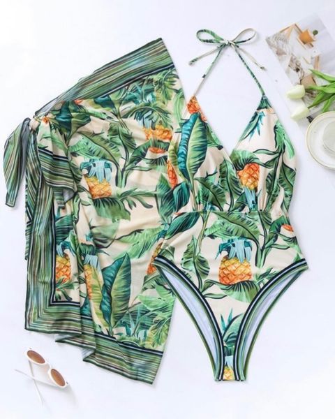 Qianmo 2025 유럽과 미국의 대외 무역 국경 간 삼각형 섹시한 원피스 열대 프린트 수영복 여성 투피스 세트스토어 가기