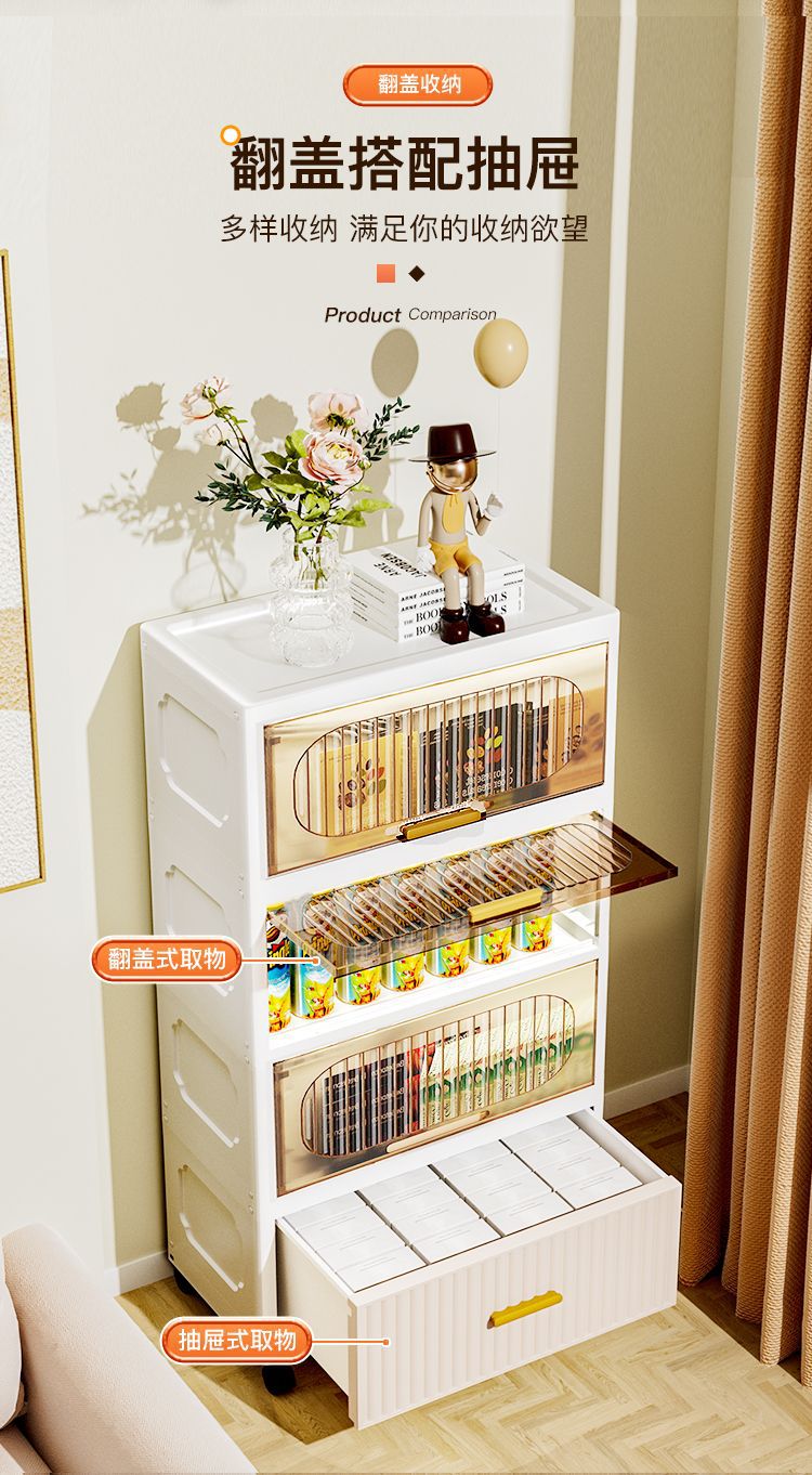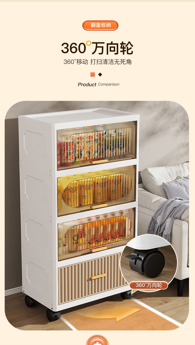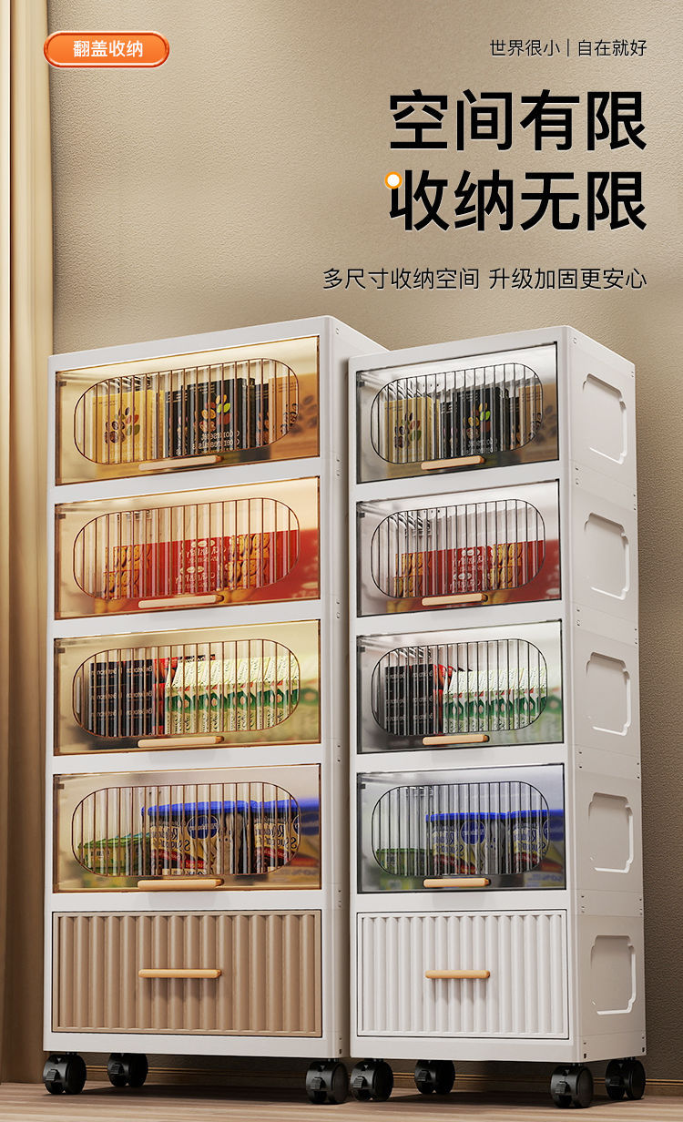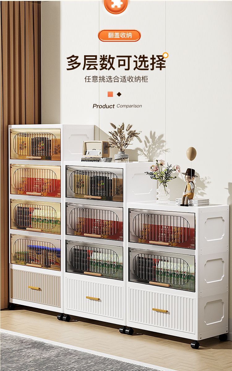 투명 플립 서랍 보관 캐비닛 가정용 보관 캐비닛 다층 스낵 보관 랙 바닥 보관 캐비닛 주방