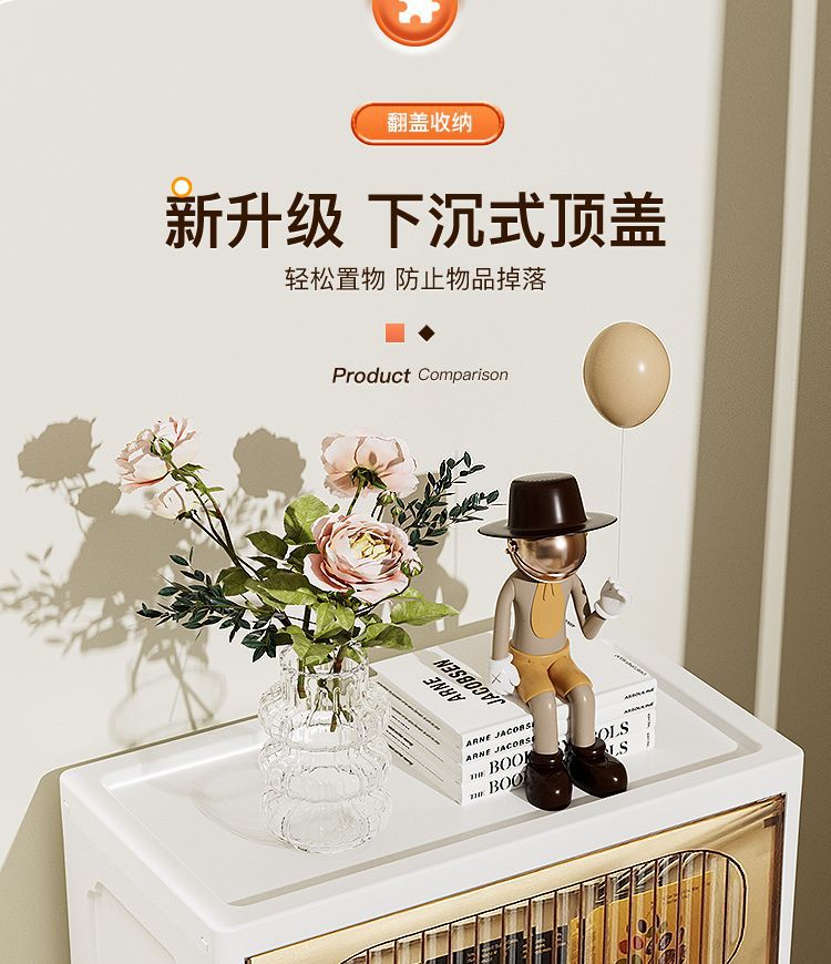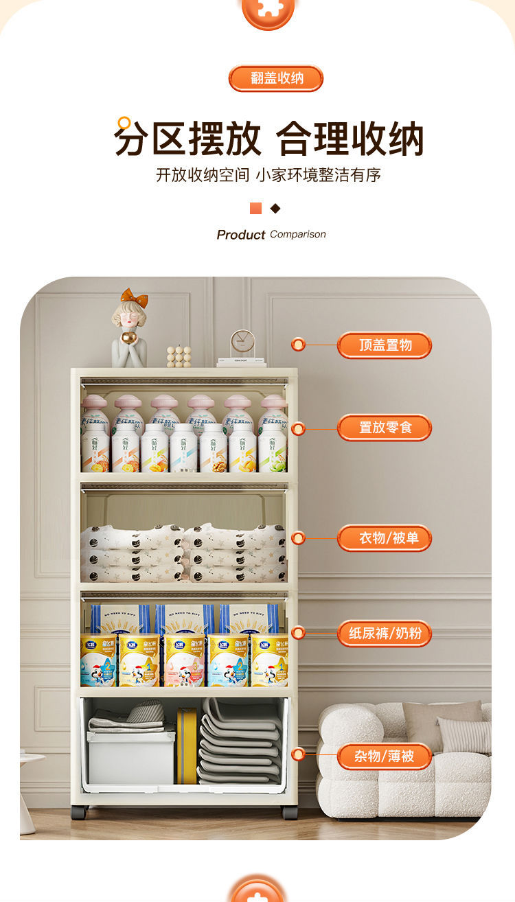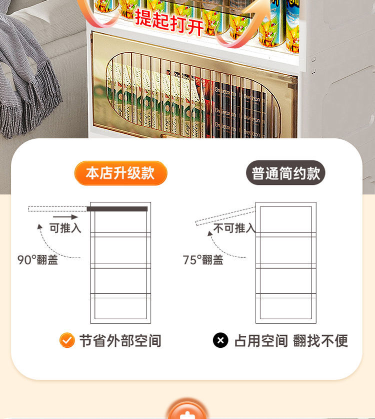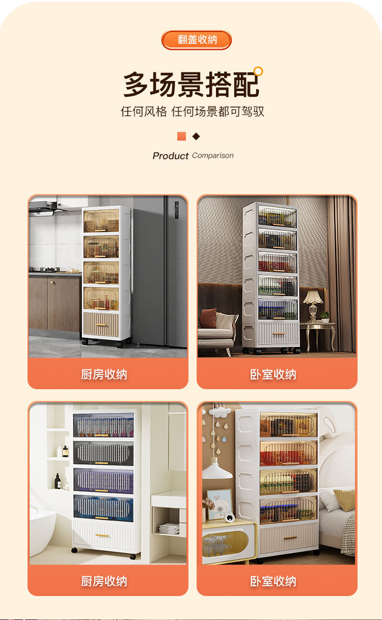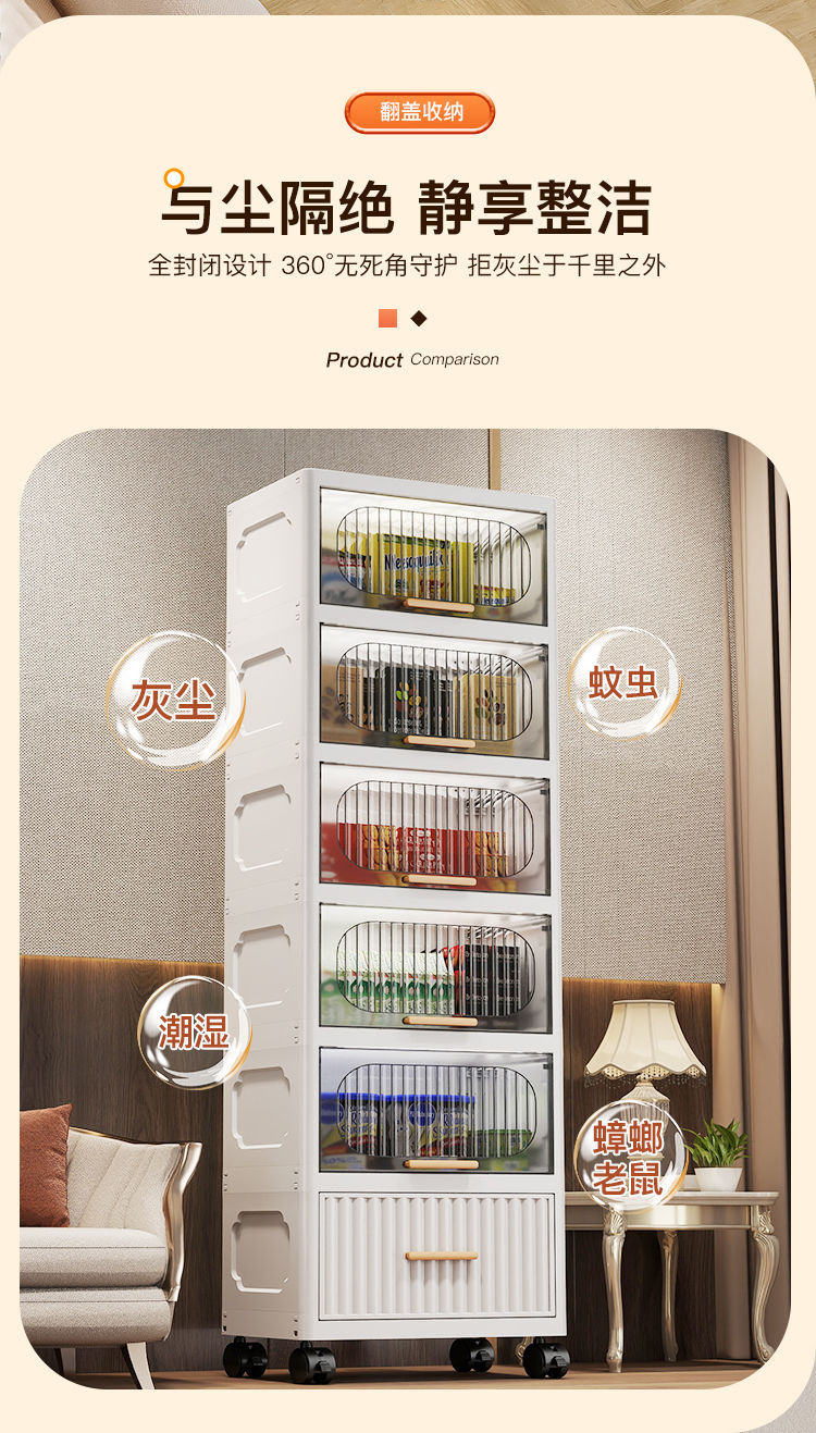 투명 플립 서랍 보관 캐비닛 가정용 보관 캐비닛 다층 스낵 보관 랙 바닥 보관 캐비닛 주방