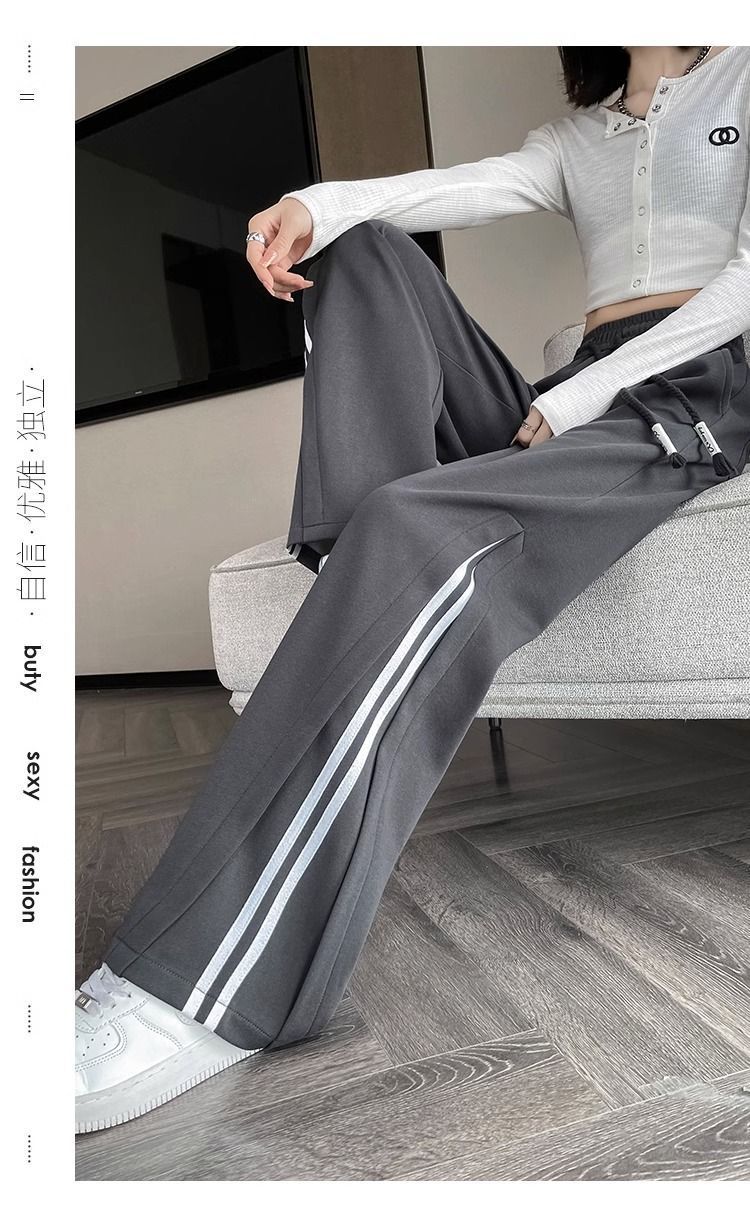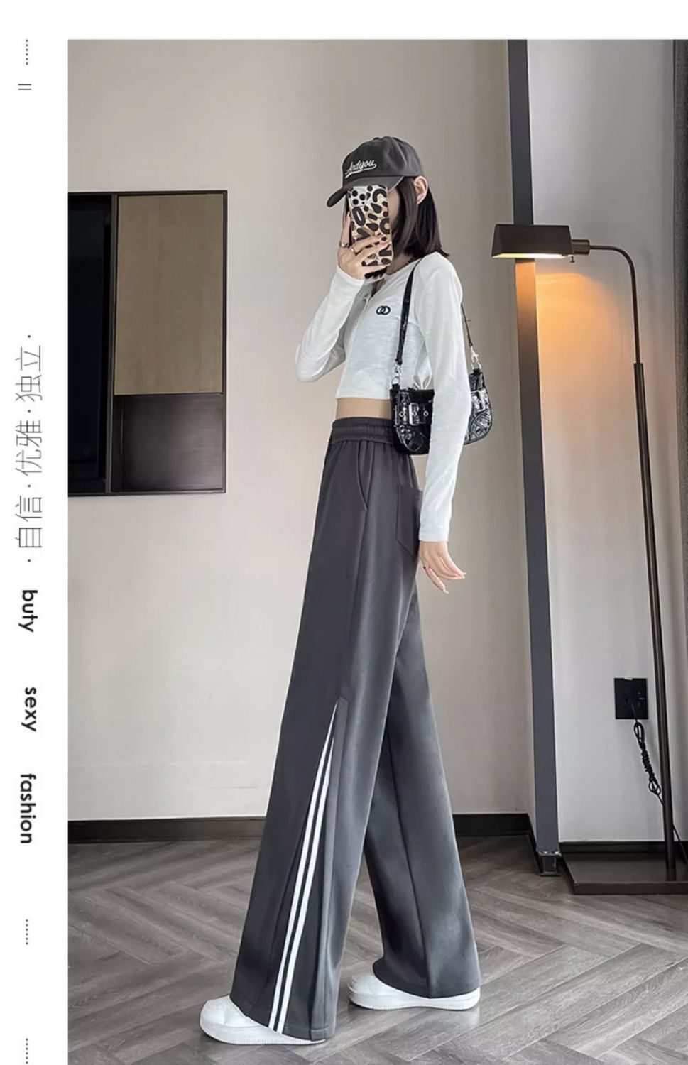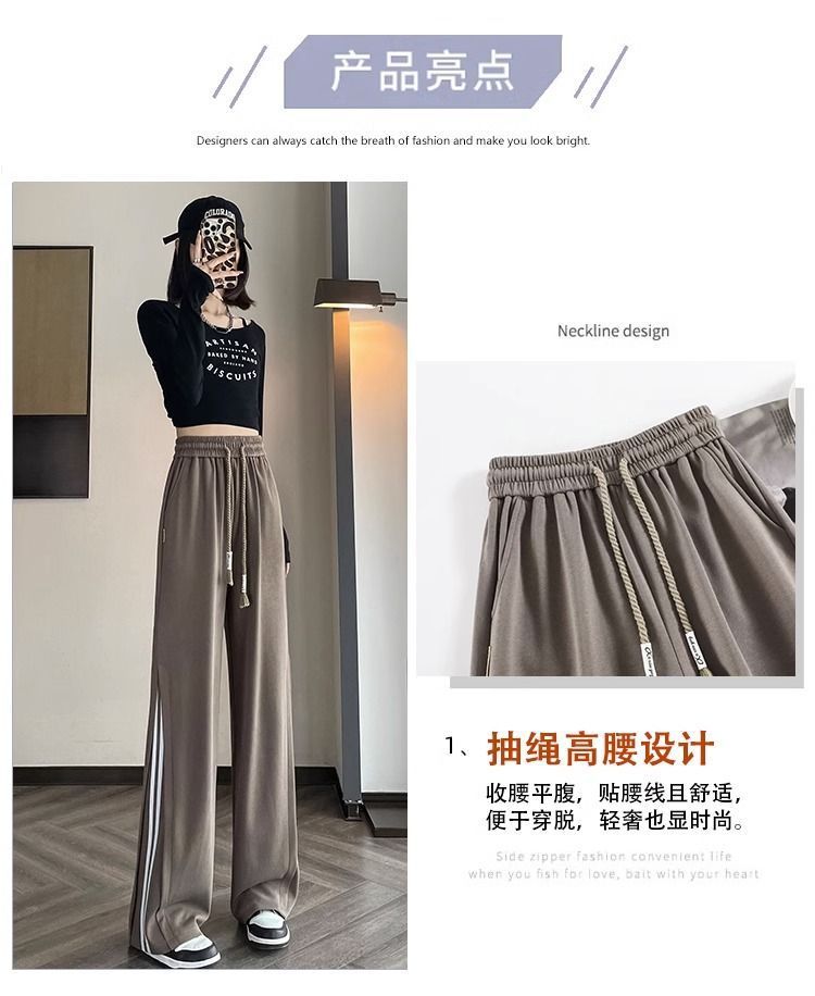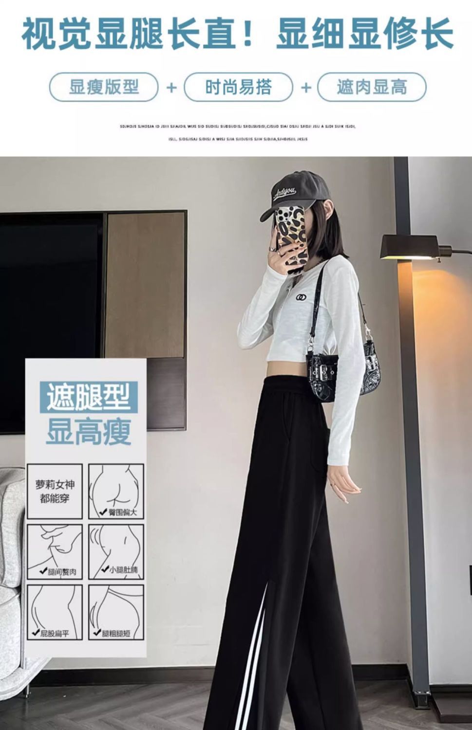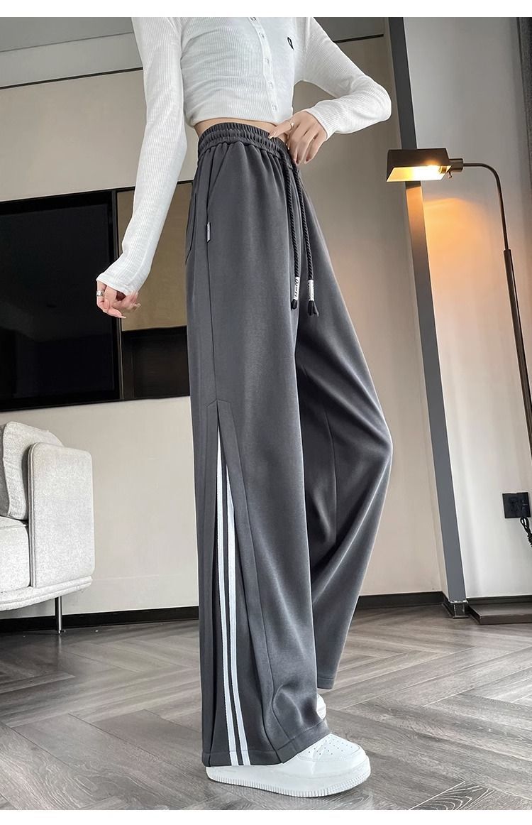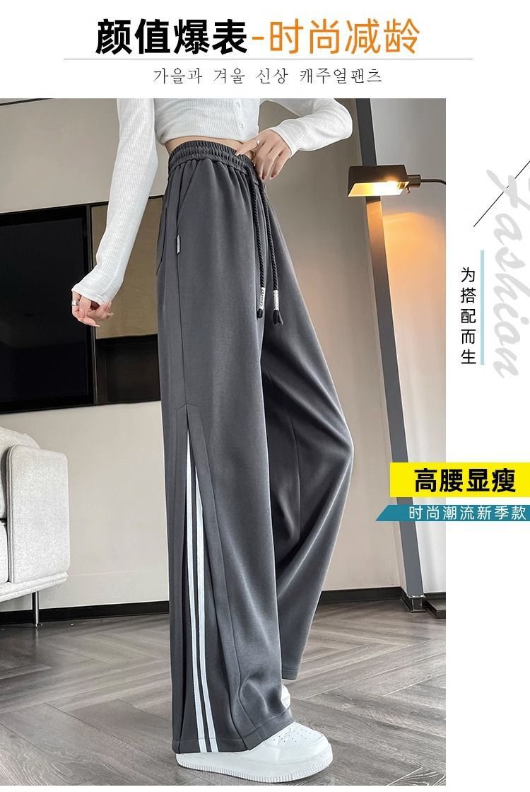 [플러스 사이즈 여성 의류] 사이드 스트라이프 와이드 레그 팬츠 가을과 겨울 두꺼운 드레이프 좁은 버전 슬림 스티칭 스트레이트 튜브 플로어 팬츠 조수
