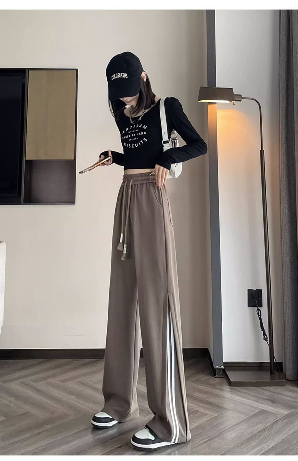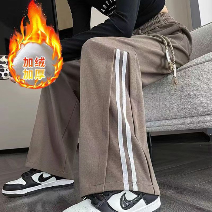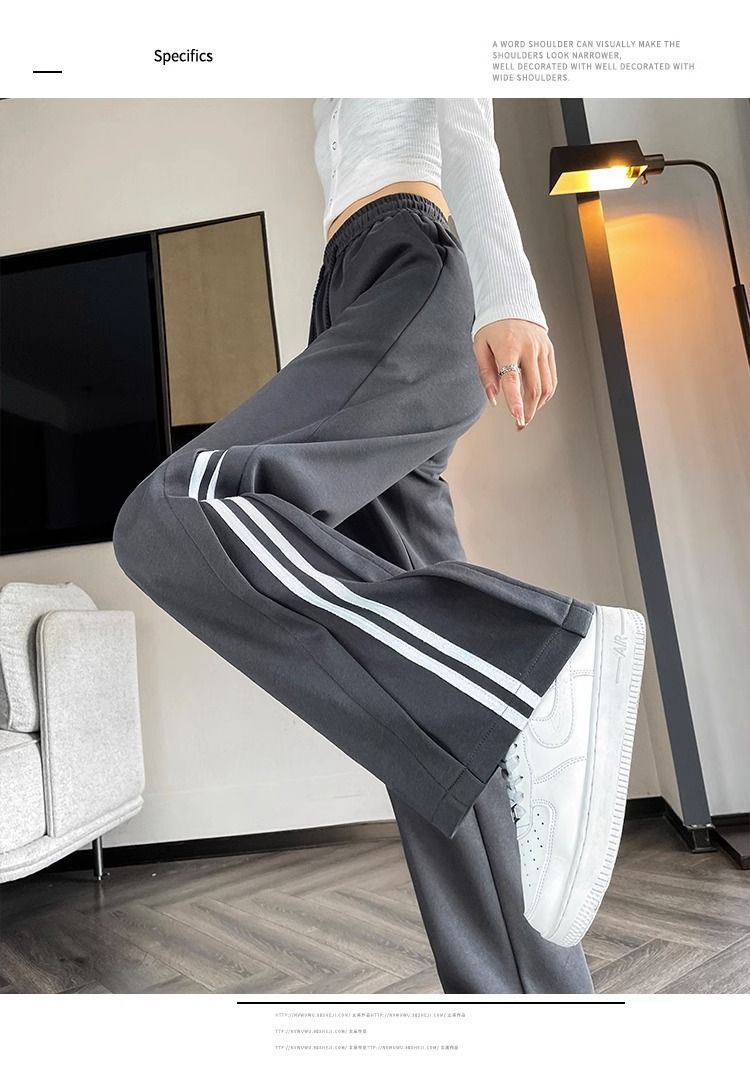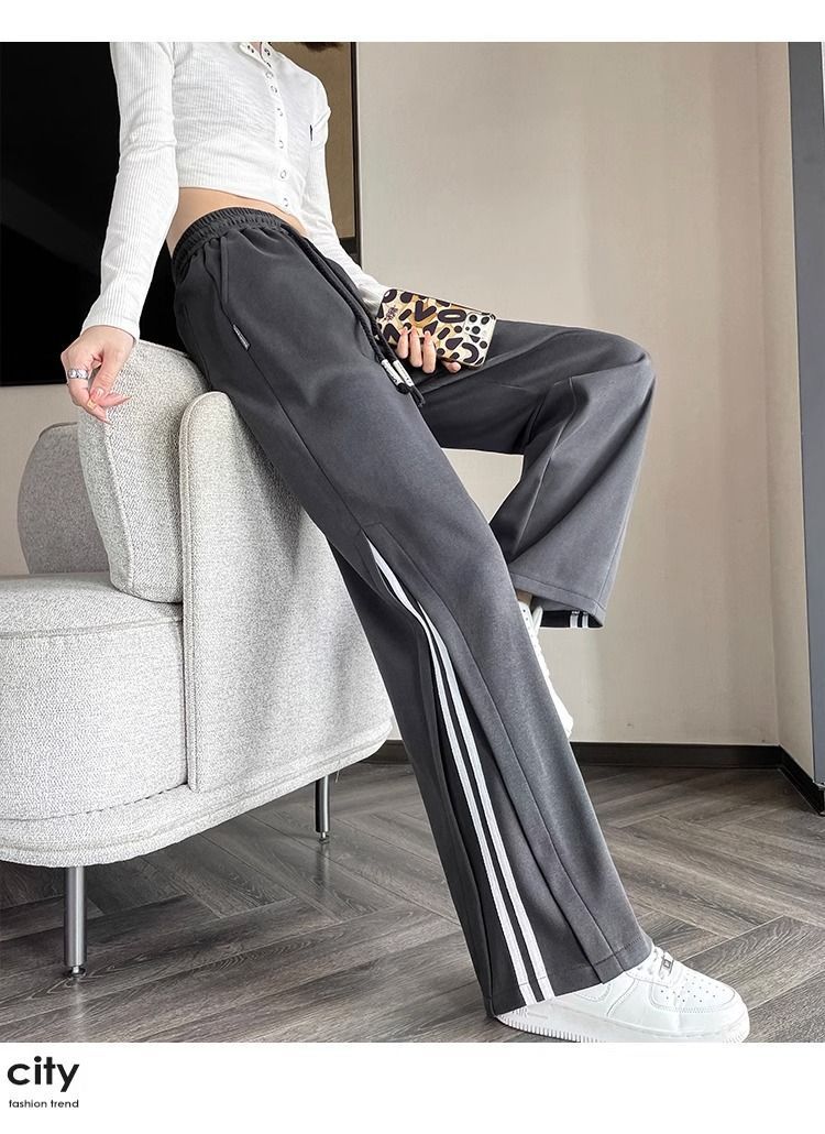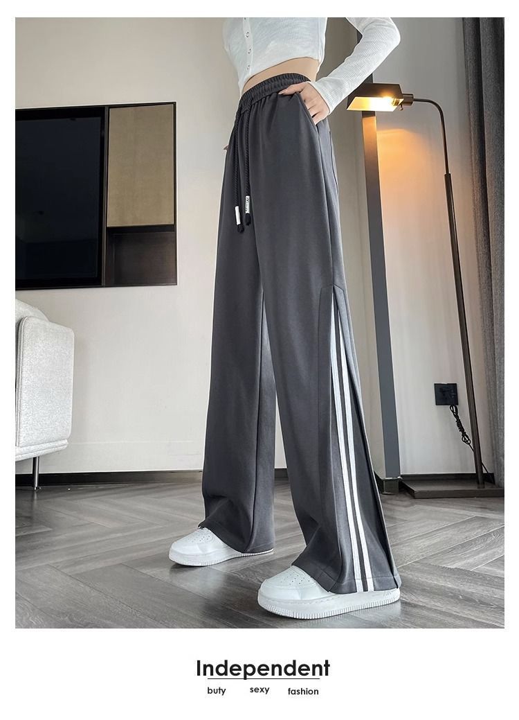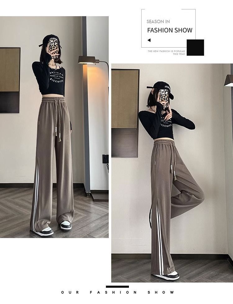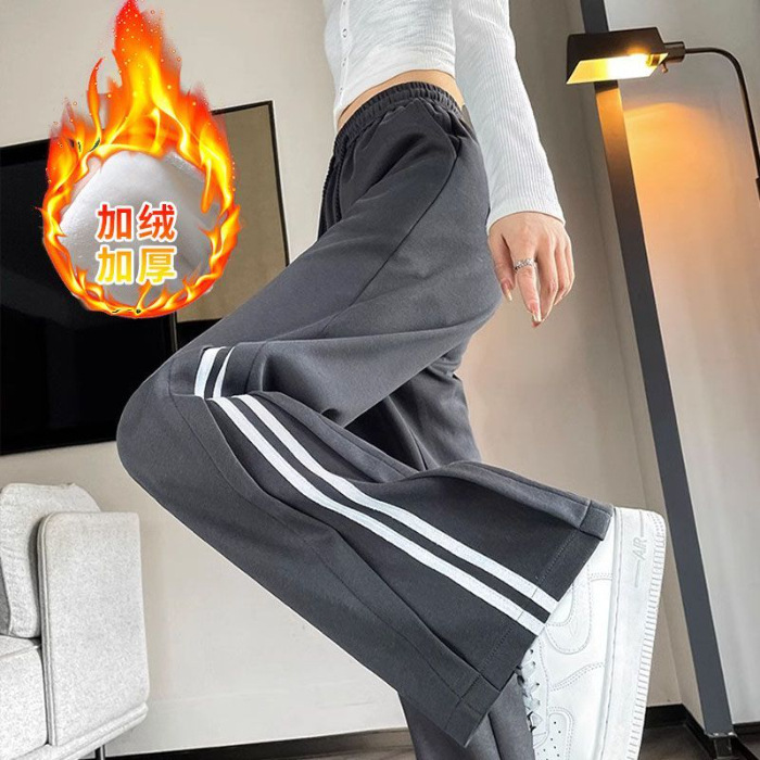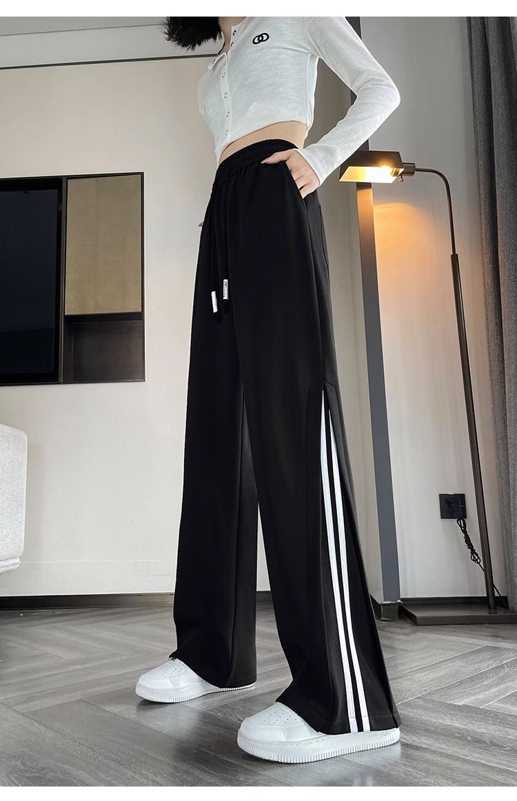 [플러스 사이즈 여성 의류] 사이드 스트라이프 와이드 레그 팬츠 가을과 겨울 두꺼운 드레이프 좁은 버전 슬림 스티칭 스트레이트 튜브 플로어 팬츠 조수