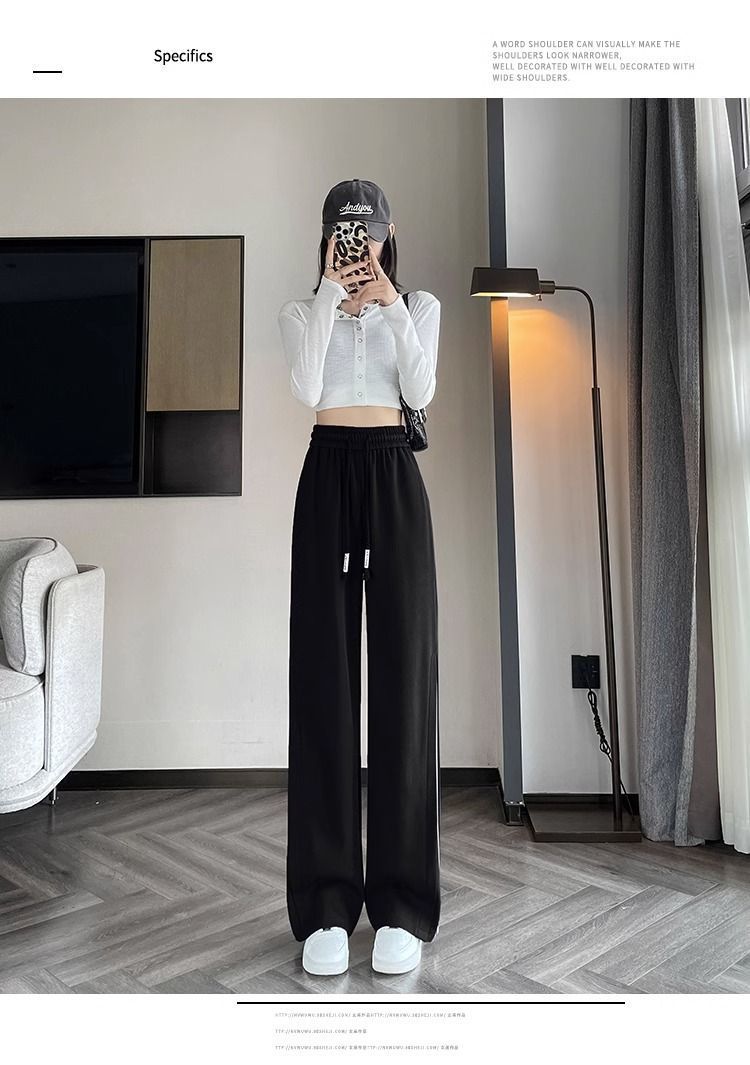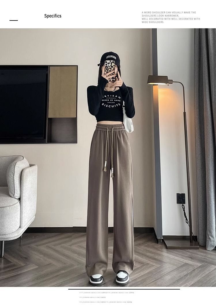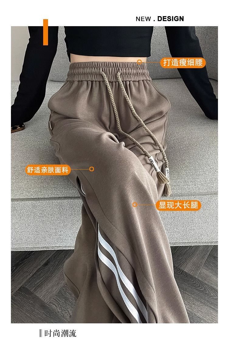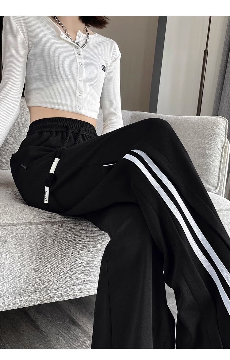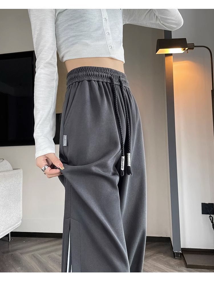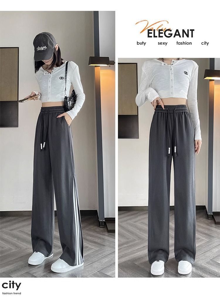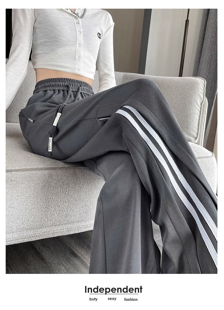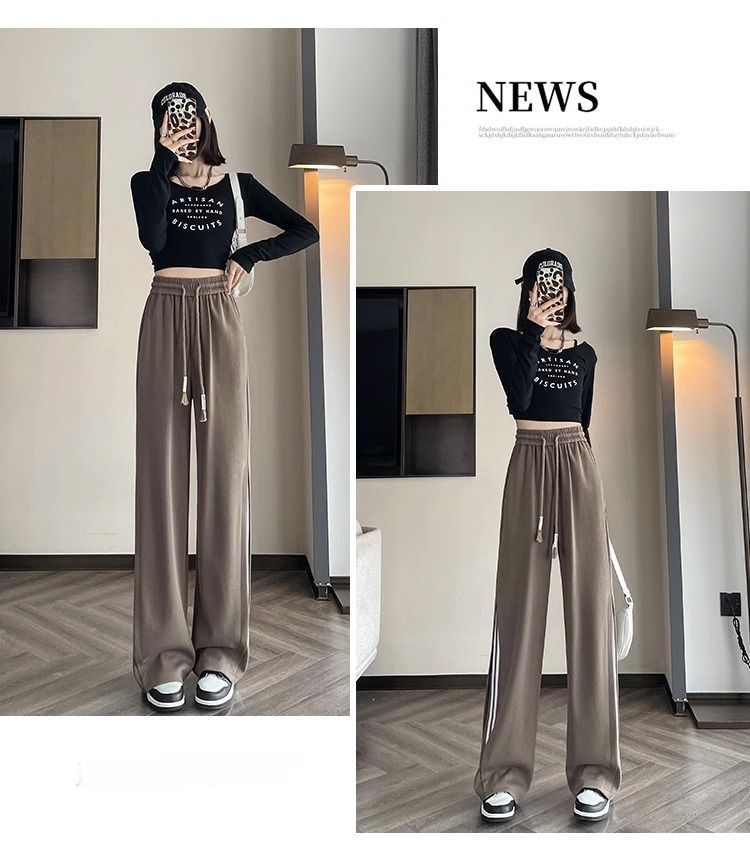 [플러스 사이즈 여성 의류] 사이드 스트라이프 와이드 레그 팬츠 가을과 겨울 두꺼운 드레이프 좁은 버전 슬림 스티칭 스트레이트 튜브 플로어 팬츠 조수