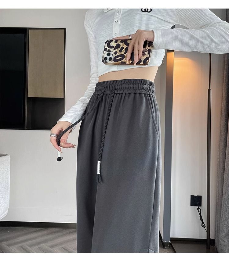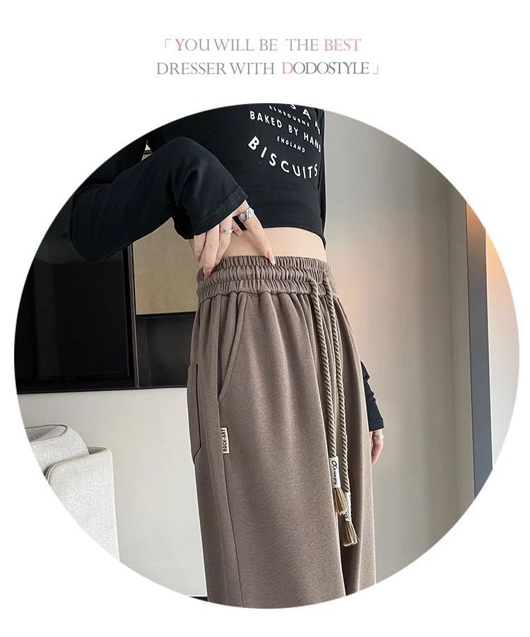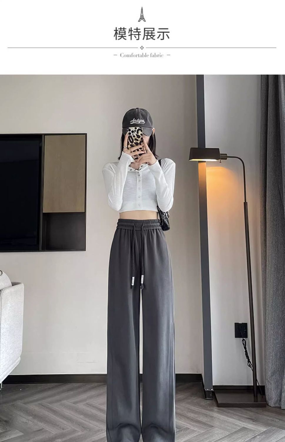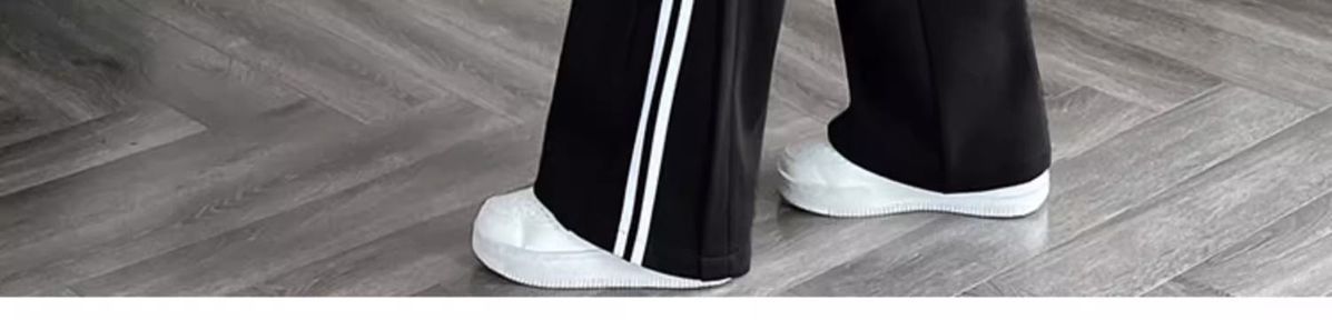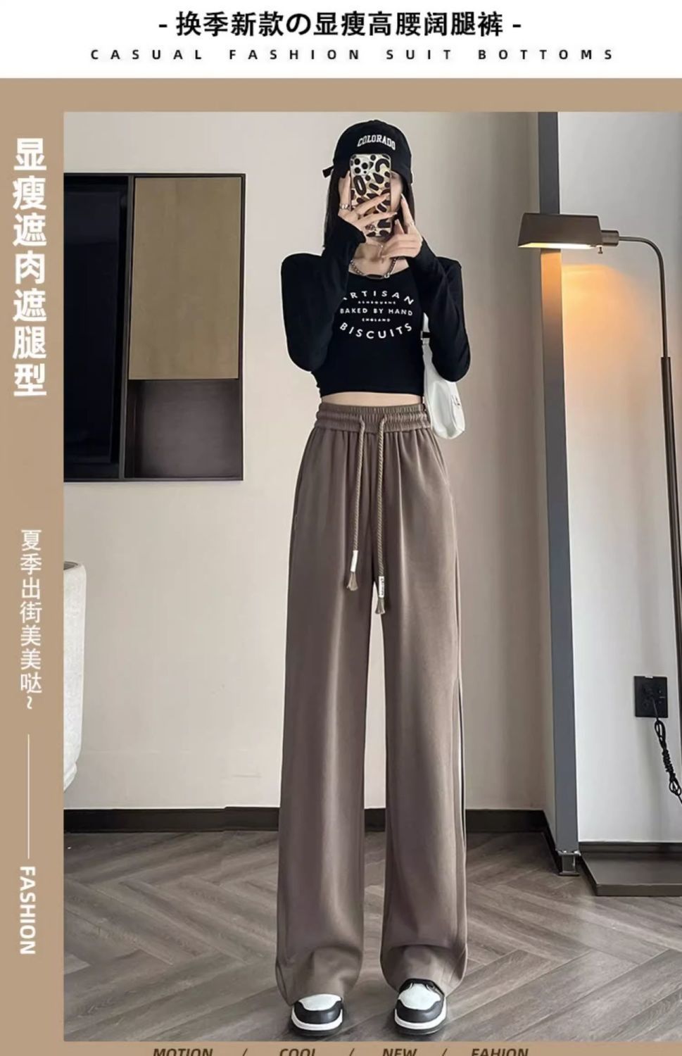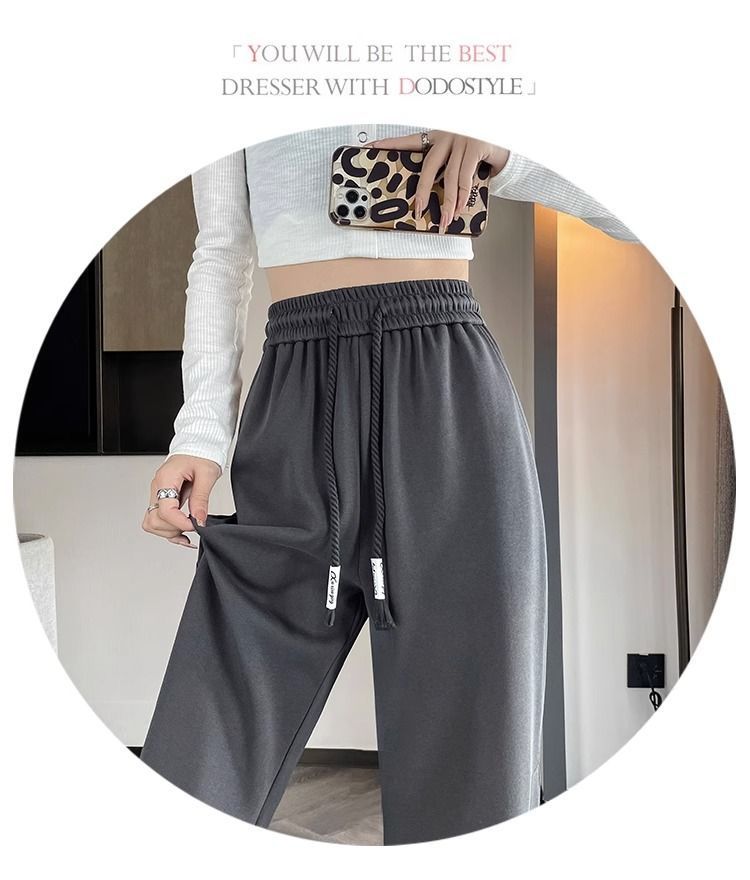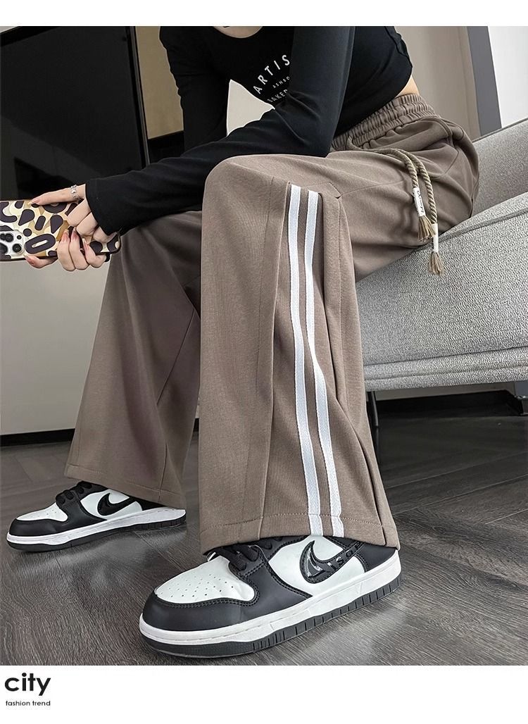 [플러스 사이즈 여성 의류] 사이드 스트라이프 와이드 레그 팬츠 가을과 겨울 두꺼운 드레이프 좁은 버전 슬림 스티칭 스트레이트 튜브 플로어 팬츠 조수